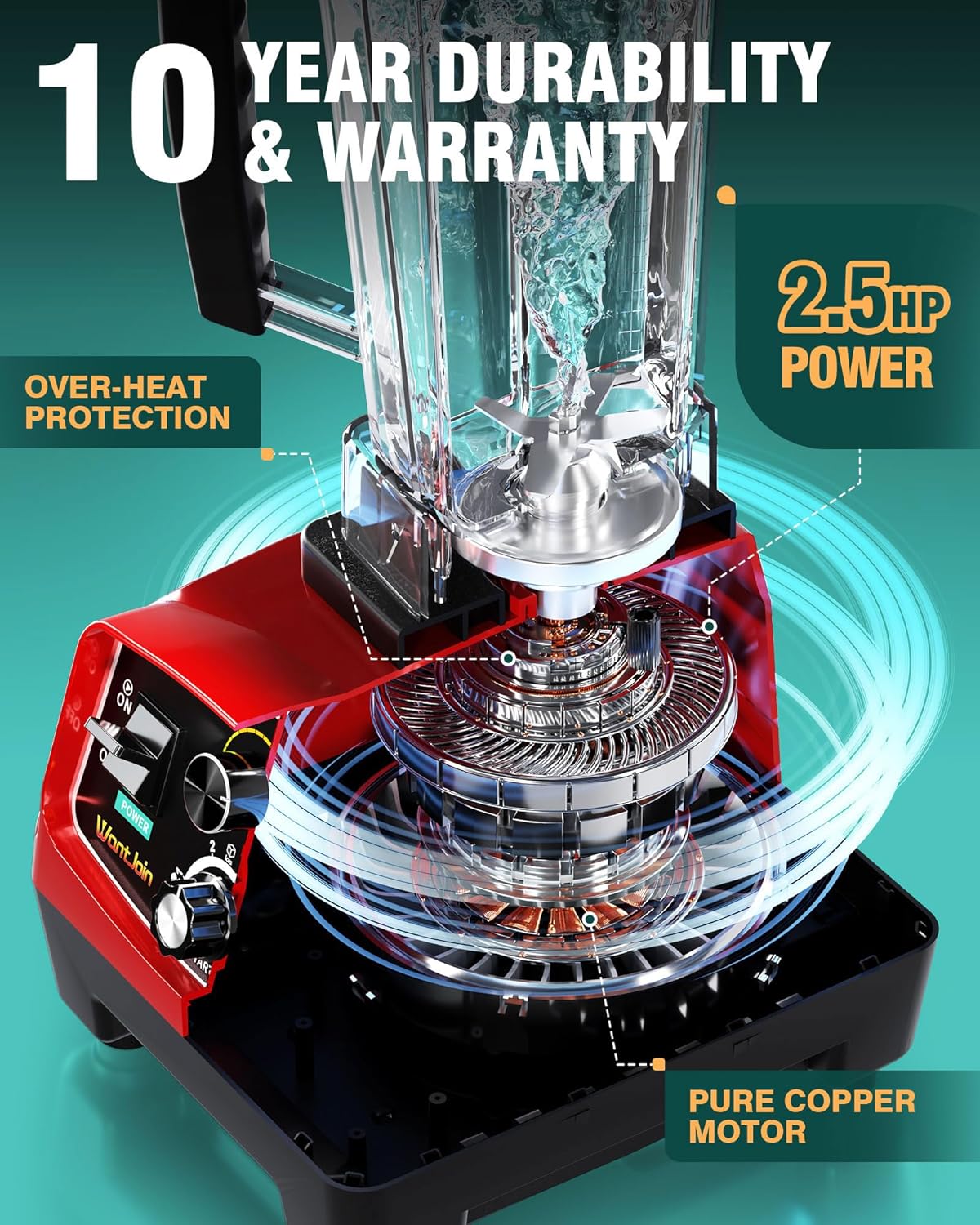 - 10-YEAR WARRANTY & PROFESSIONAL SERVICE: Suitable for both home and commercial use, this WantJoin powerful blender includes a motor base, BPA-free container, and tamper. We provide a ten-year warranty and one-on-one customer service. Contact us anytime for assistance with any issues.