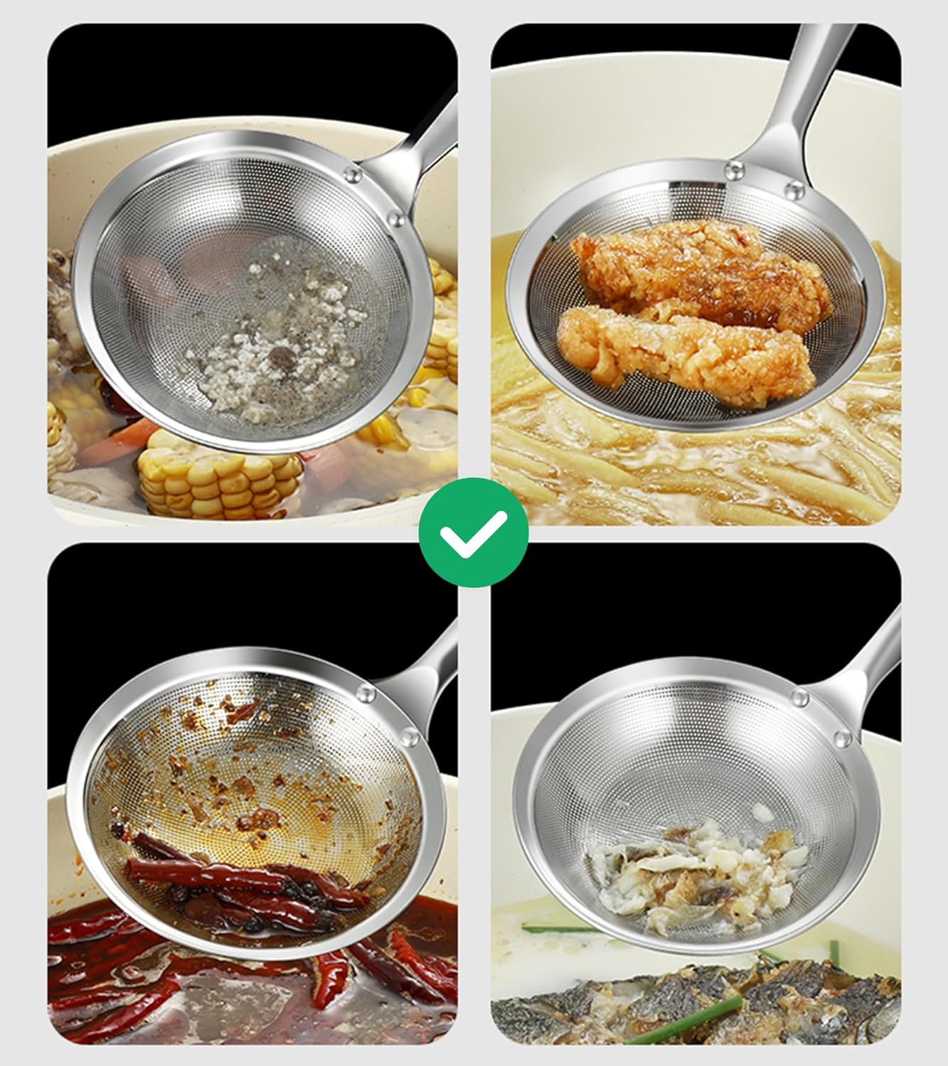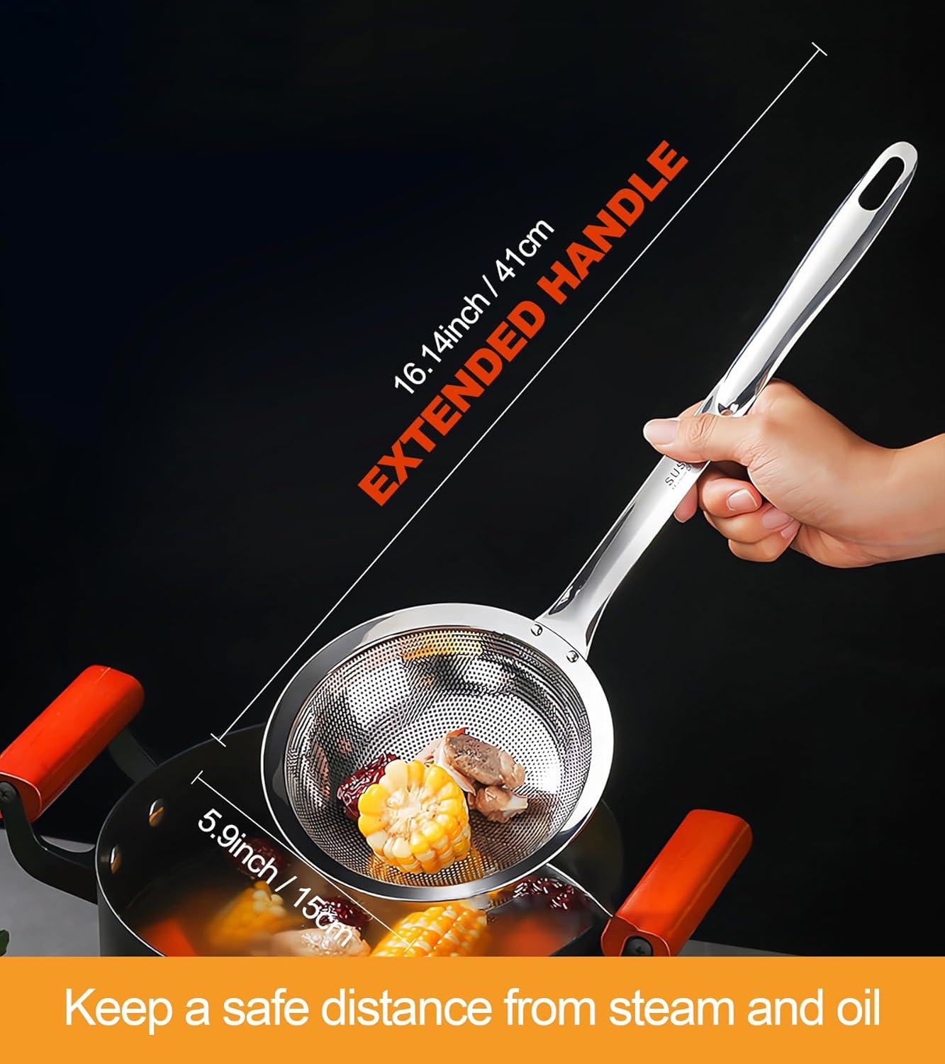 - 【Extra Long Heat-Resistant Handle】 - Keeps hands safe from boiling oil splashes.