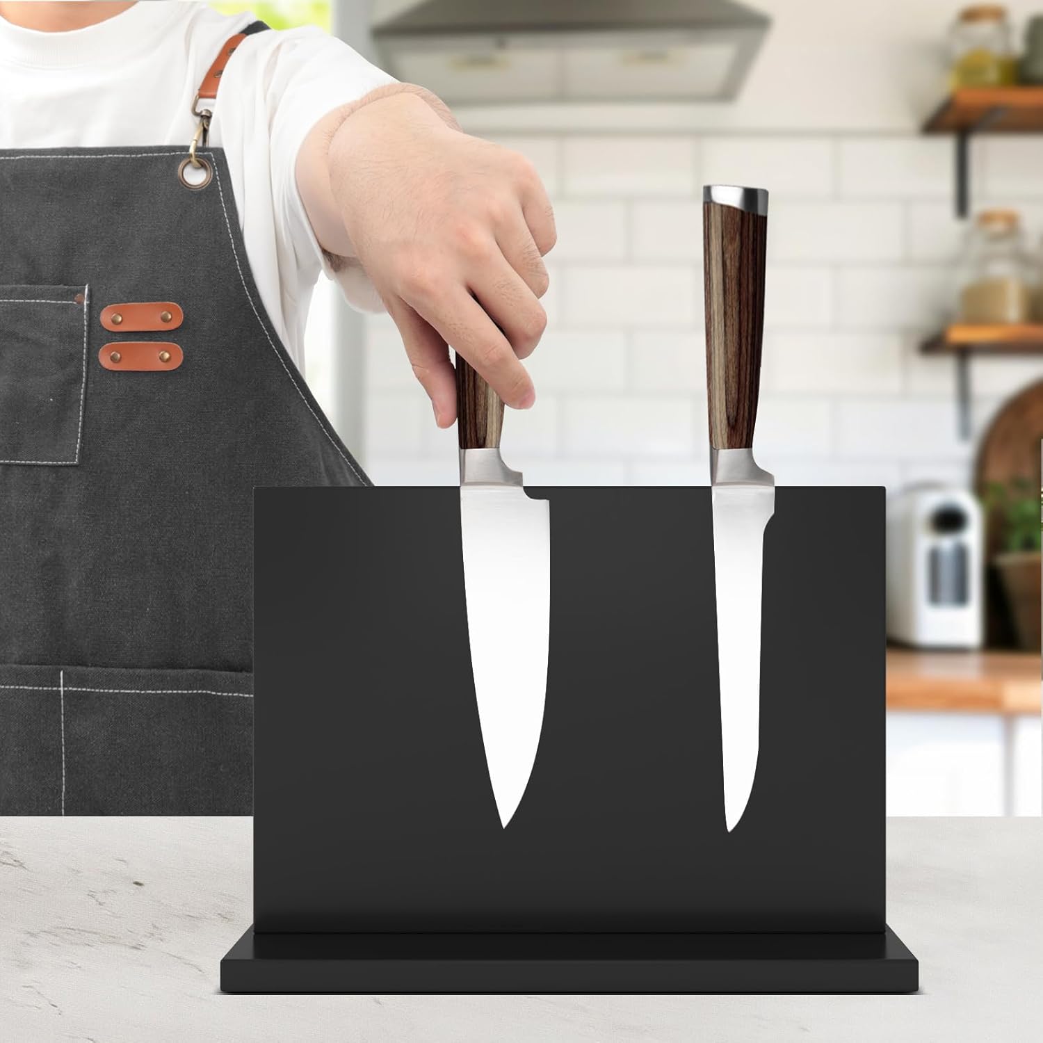 Black Magnetic Knife Holder, Double-Sided Magnetic Knife Block Universal Multi-function Display Rack for Kitchen Counter