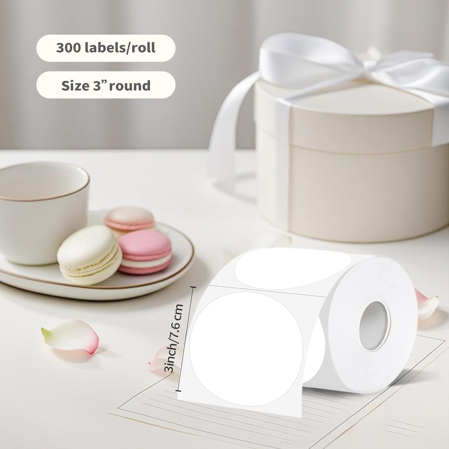 Thermal Label,3 Inch White Round Thermal Printer Sticker,Self-Adhesive Round Direct Thermal Labels,Thermal Stickers for DIY Logo Design,Name Tag (300 Labels/1 Roll)