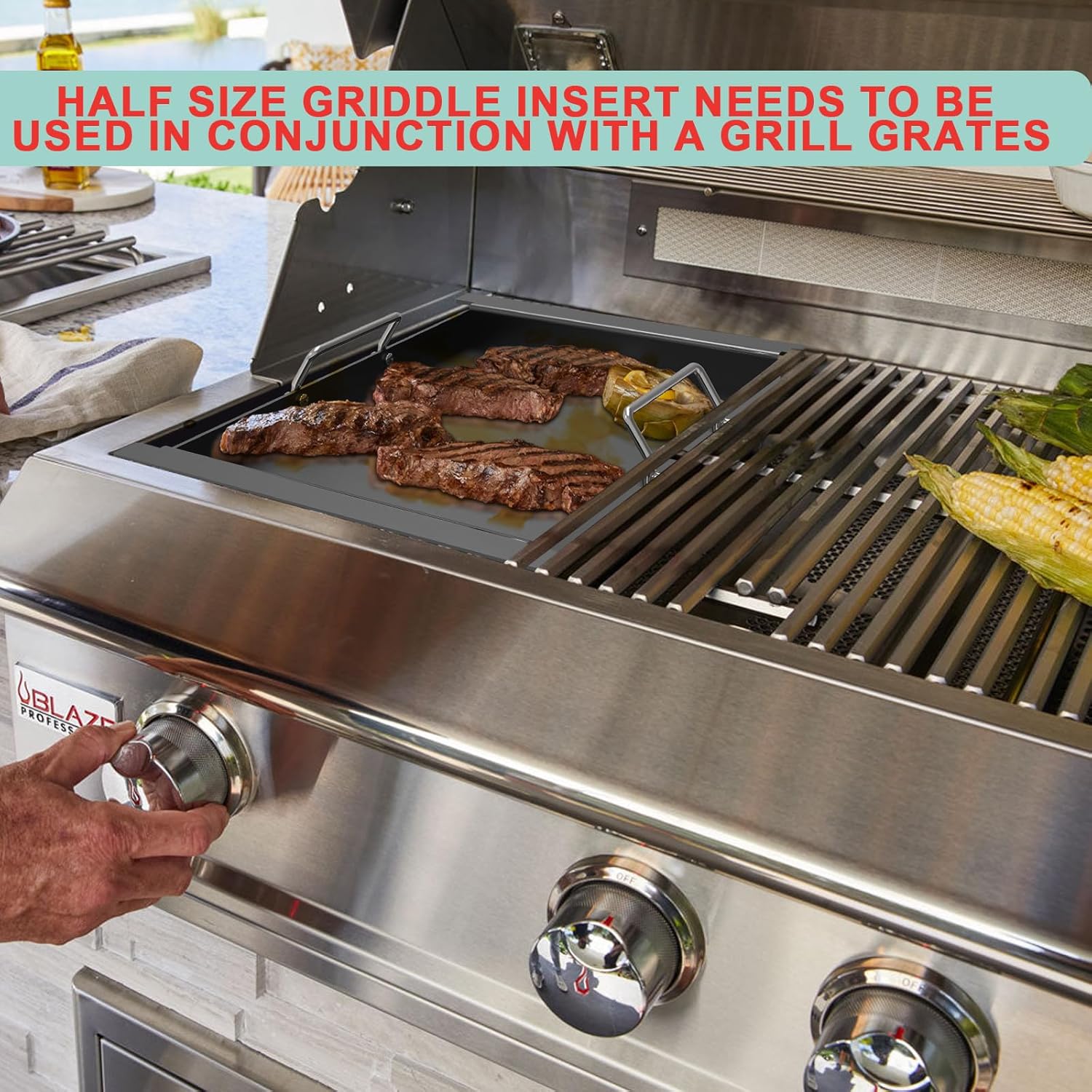 Half Size Griddle Insert for Blaze Grills 3, 4, 5 Burner Natural Gas Grill, Carbon Steel Flat Top Griddle Plate for Summerset Sizzler 32" & 40" and AOG 24'' T Series, RCS 32" Grill, 17.9''L x 14.5''W