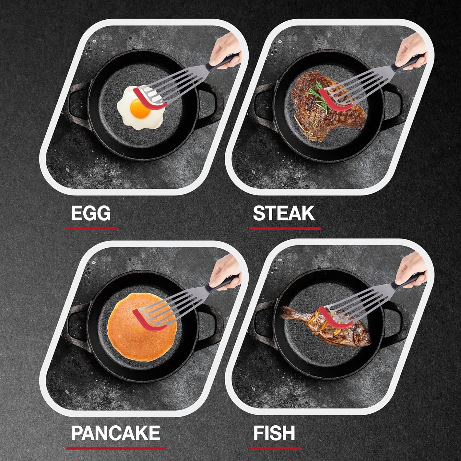 - COMFORTABLE ERGONOMIC HANDLE: The spatula features an ergonomic handle that provides a comfortable, non-slip grip, ensuring easy control when flipping delicate foods like fish and eggs. It reduces hand strain during extended cooking sessions.