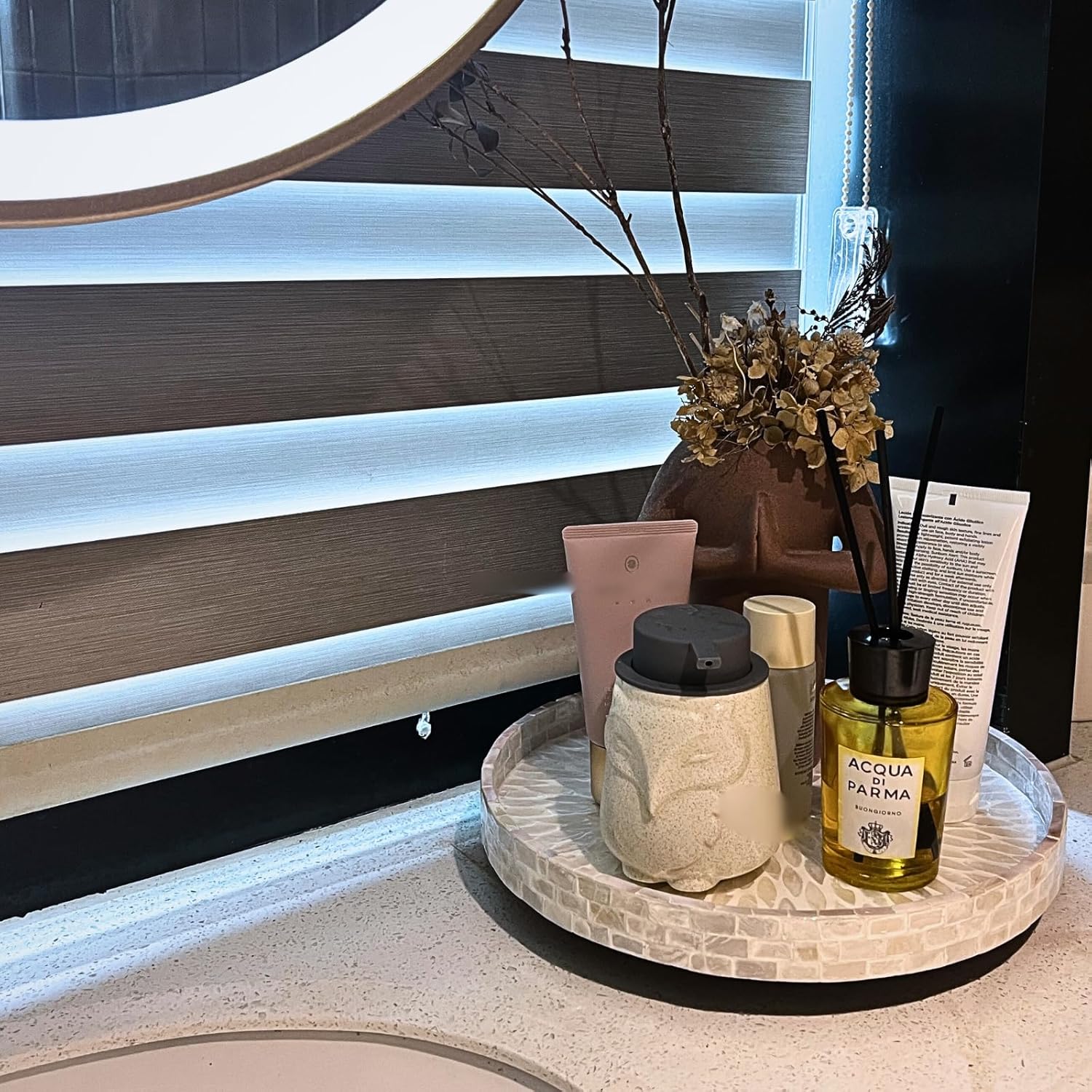 - Effortless 360° Rotation: Enjoy smooth, silent spinning with our turntable stand, keeping your spices, syrups, and accessories within reach. Whether you're using it as a vanity tray for your skin care products, or kitchen counter organizer for salt, pepper and olive oil, this circular Lazy Susan keeps your space organized and clutter-free.