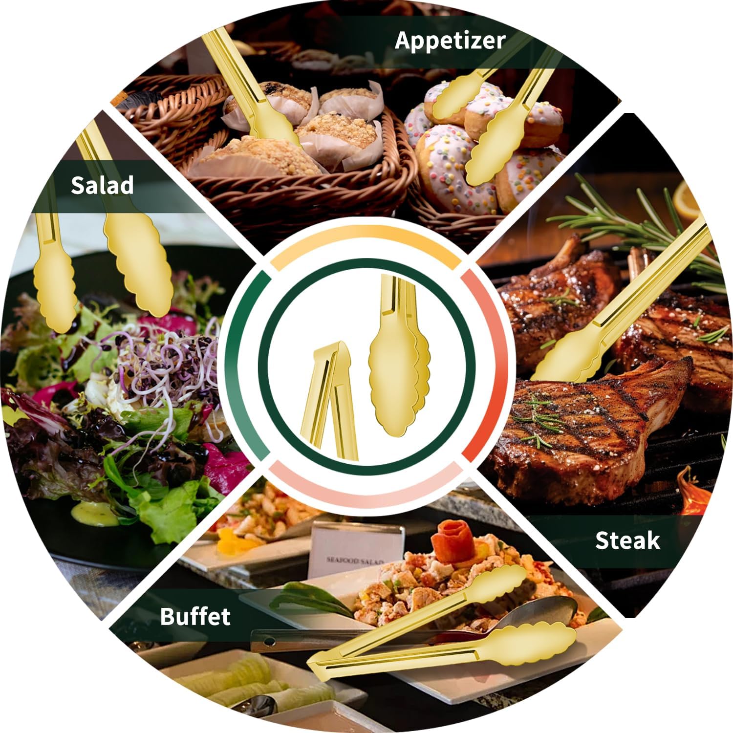 - Premium Quality Gold Tongs: These gold tongs are constructed from 100% food - grade stainless steel, ensuring safety and durability. The gold - plated surface not only adds luxury but also provides rust resistance. The thick and sturdy construction prevents deformation, and the smooth edges safeguard your hands from scratches, making them perfect for everyday use.
