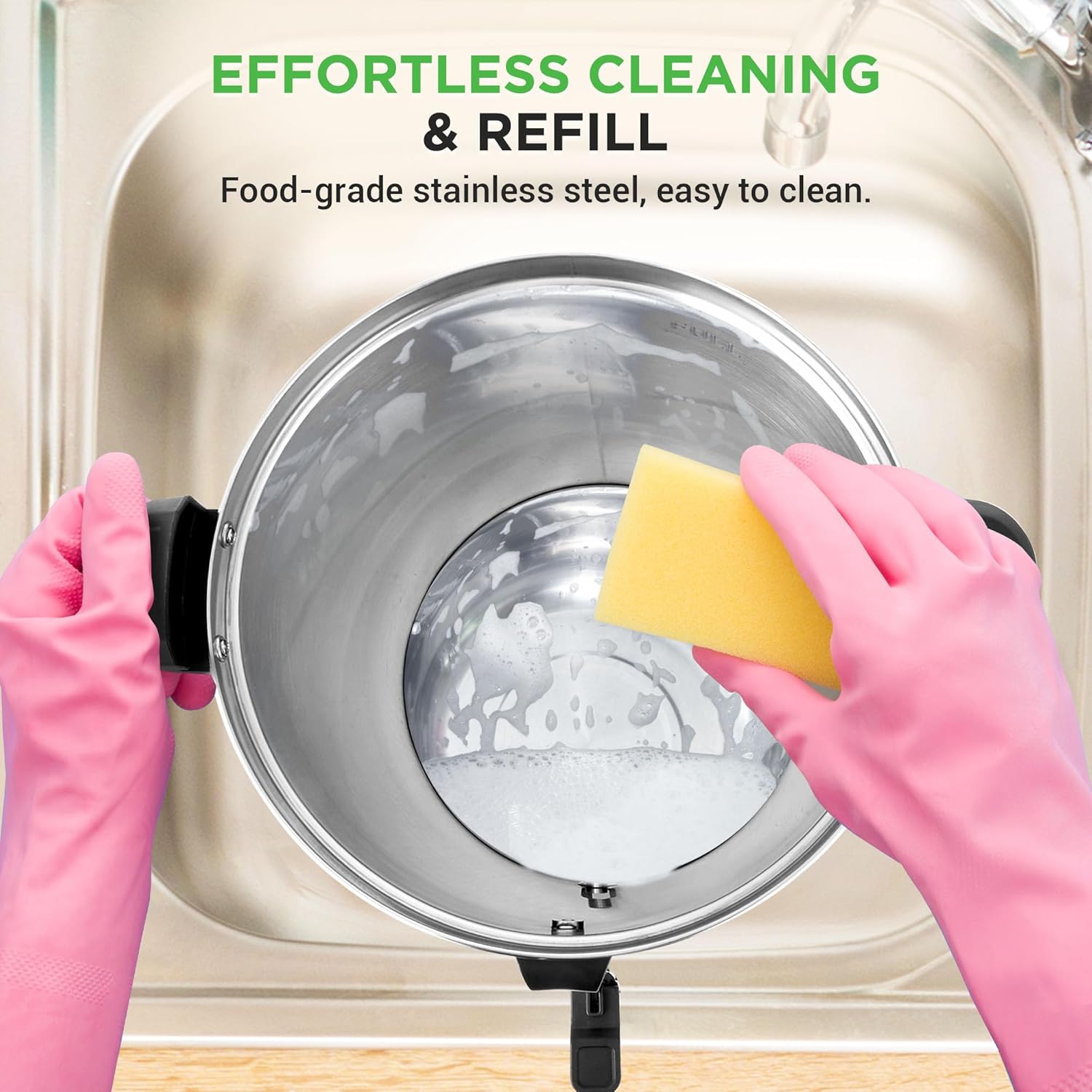 - POWERFUL, COMPACT, AND EASY TO USE - With 1100W heating power and a sleek footprint (11.4" x 11.4" x 20.0"), this electric hot water dispenser is countertop-friendly. Cool-touch handles and plug-in operation provide maximum safety and ease of use.