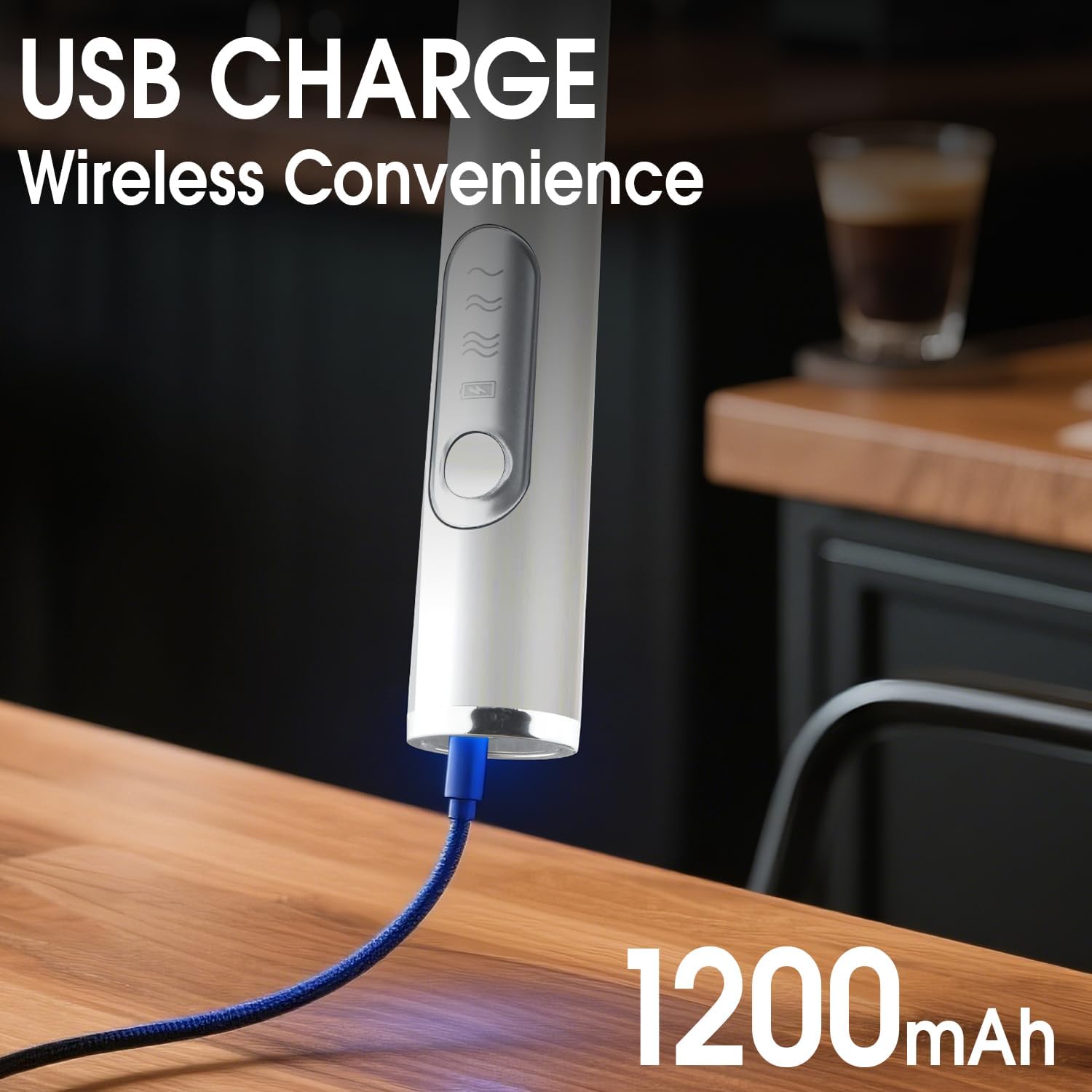- Rechargeable & Cordless Convenience: Enjoy hassle-free mixing with this handheld milk frother! The battery offers long-lasting power for coffee, lattes, or whipped cream—perfect for home, camping, or travel. No cords, no mess!