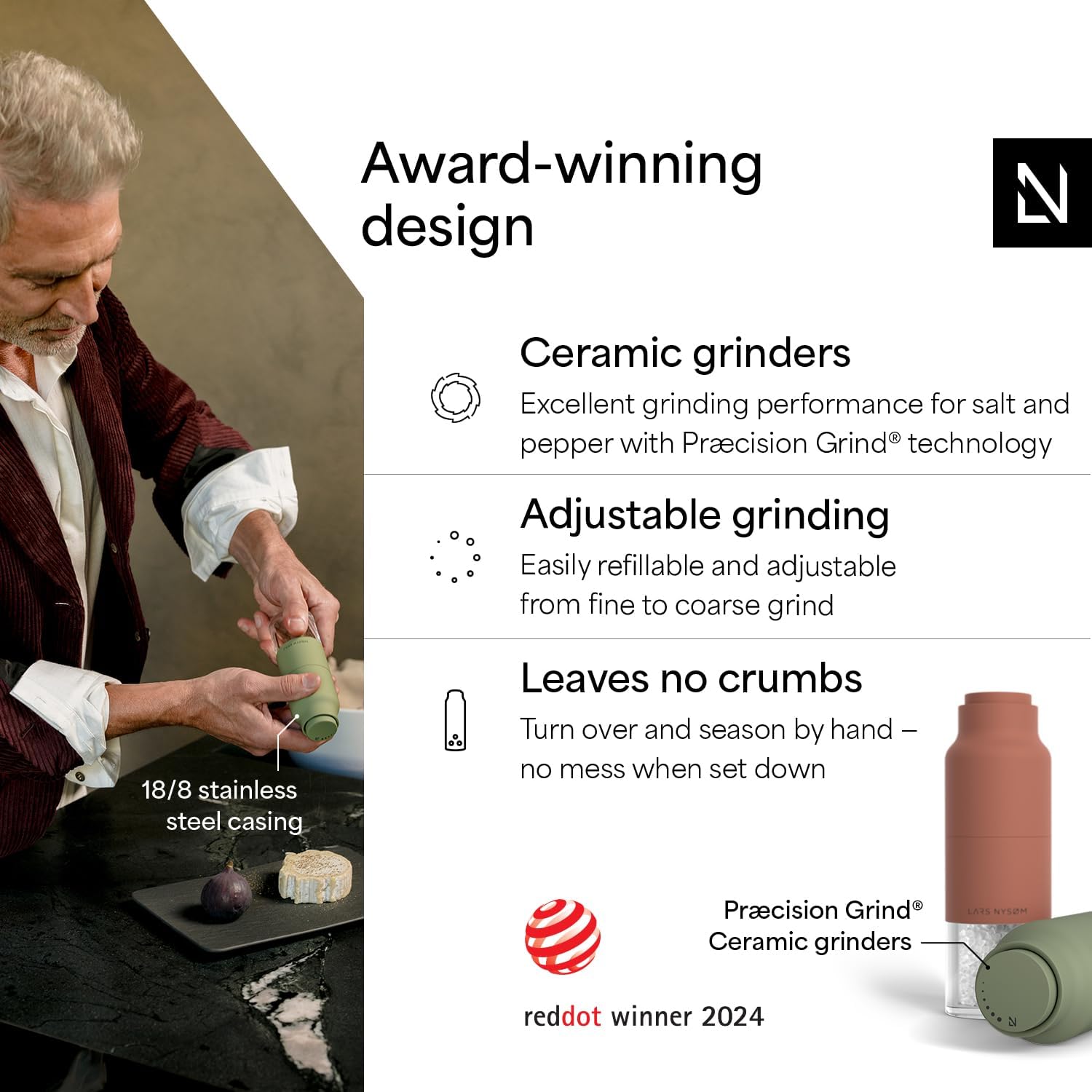 LARS NYSØM Salt and Pepper Grinder Set, Stainless Steel Manual Salt and Pepper Mills, Adjustable Ceramic Grinder, Design Spice Shakers (Red/Green)