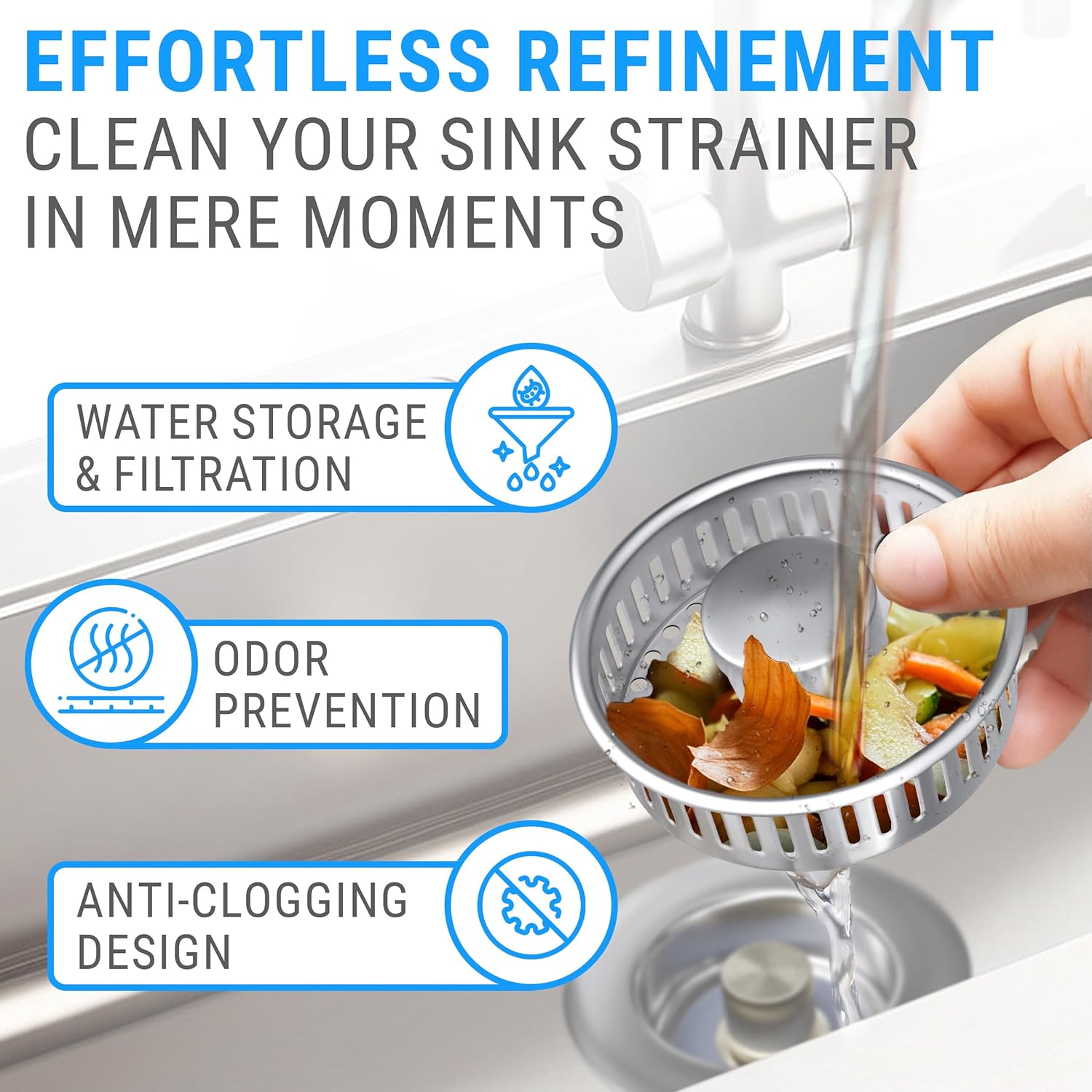 - 1. ๐๐ถ๐๐ฐ๐ต๐ฒ๐ป ๐ฆ๐ถ๐ป๐ธ ๐ฆ๐๐ฟ๐ฎ๐ถ๐ป๐ฒ๐ฟ: Prevents drain clogs by filtering food debris with an effective food catcher, reducing odors and buildup in both kitchen and bathroom sinks. Its practical design allows smooth water flow and is easy to clean and install โ ideal for homes and restaurants. The trusted solution to protect your sink from clogs.