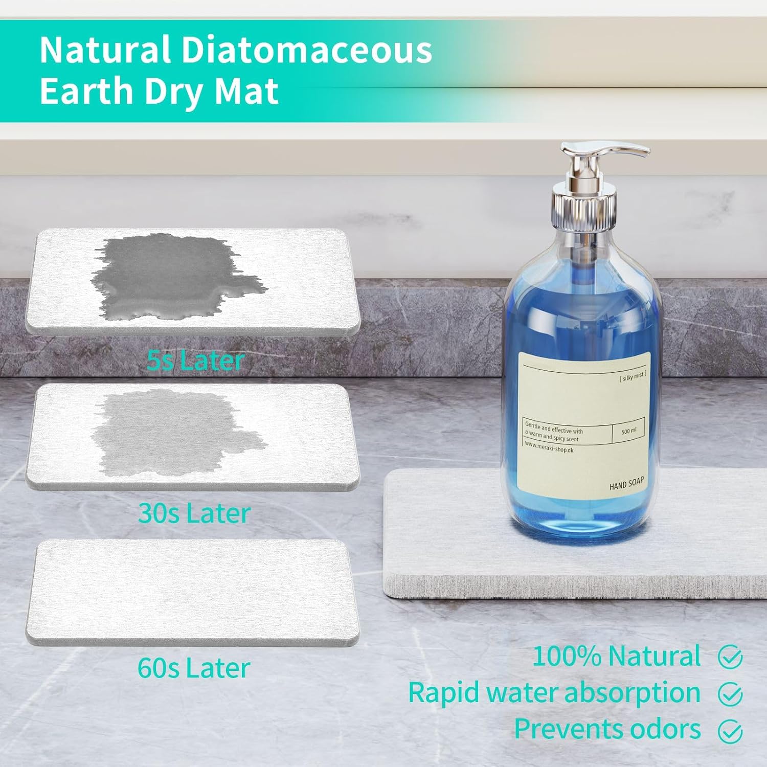 - [Instant Dry Sink Caddy]: The bottom of our sponge holder is made of diatomaceous earth absorbent mat, which automatically absorbs water and dries in 60 seconds, no longer need to manually pour water.The mat is removable, so you can remove it for cleaning