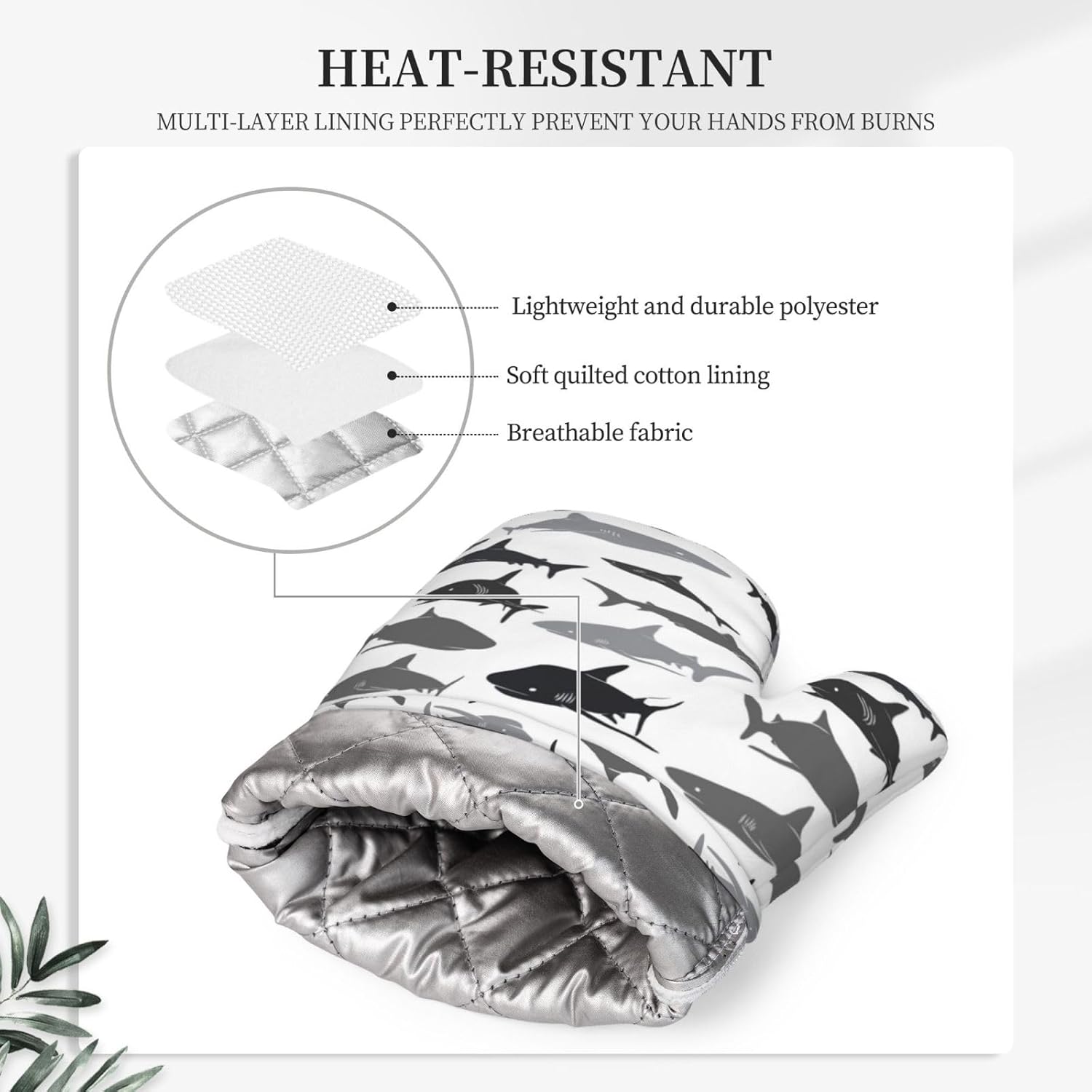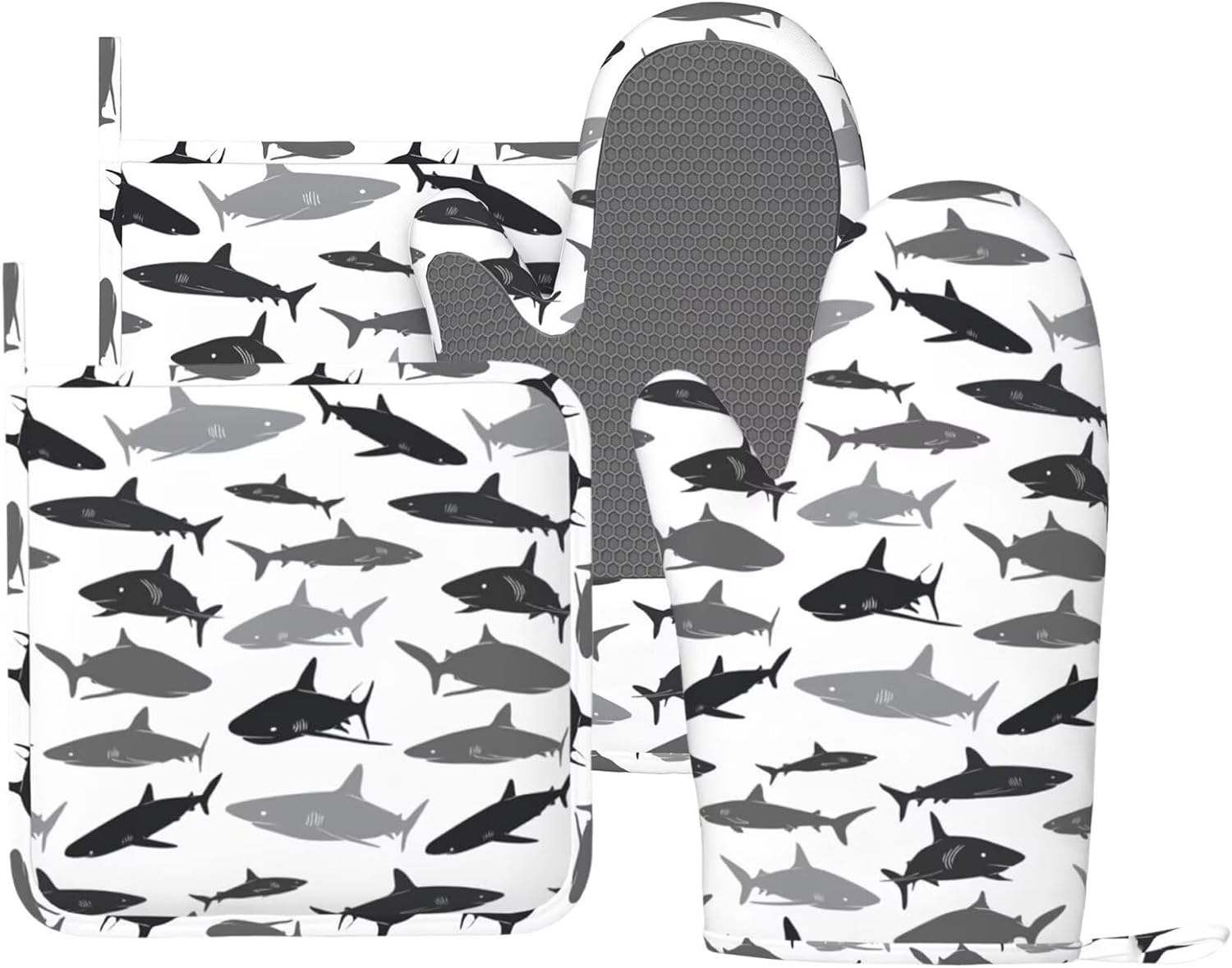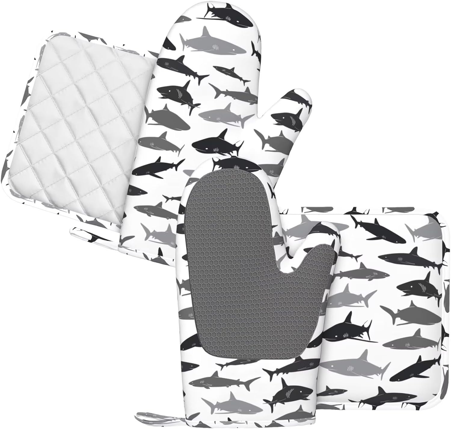 - HEAT RESISTANT: The sharks silicone oven mitts and non-slip pot holders set are heat resistant at 392 F/200 C because of their durable construction so they can effectively keep you protected from burning while you enjoy cooking and grilling
