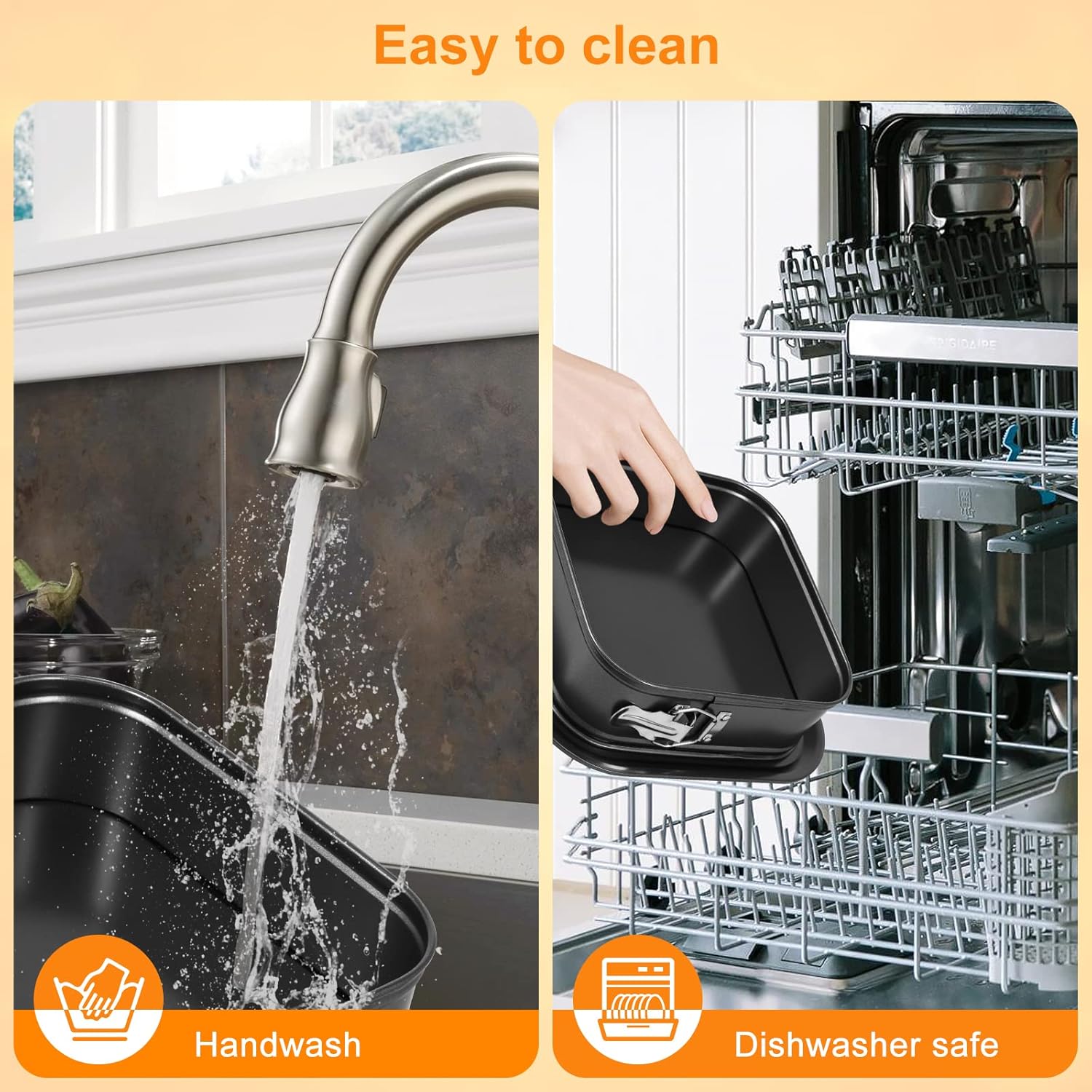 - Healthy Food Grade Coating: Non-stick coating is a food grade safety coating with no harsh chemicals or hazardous substances. And you can easily remove the baked cake without sticking or damaging it,also you can easily clean the springform cake pan.