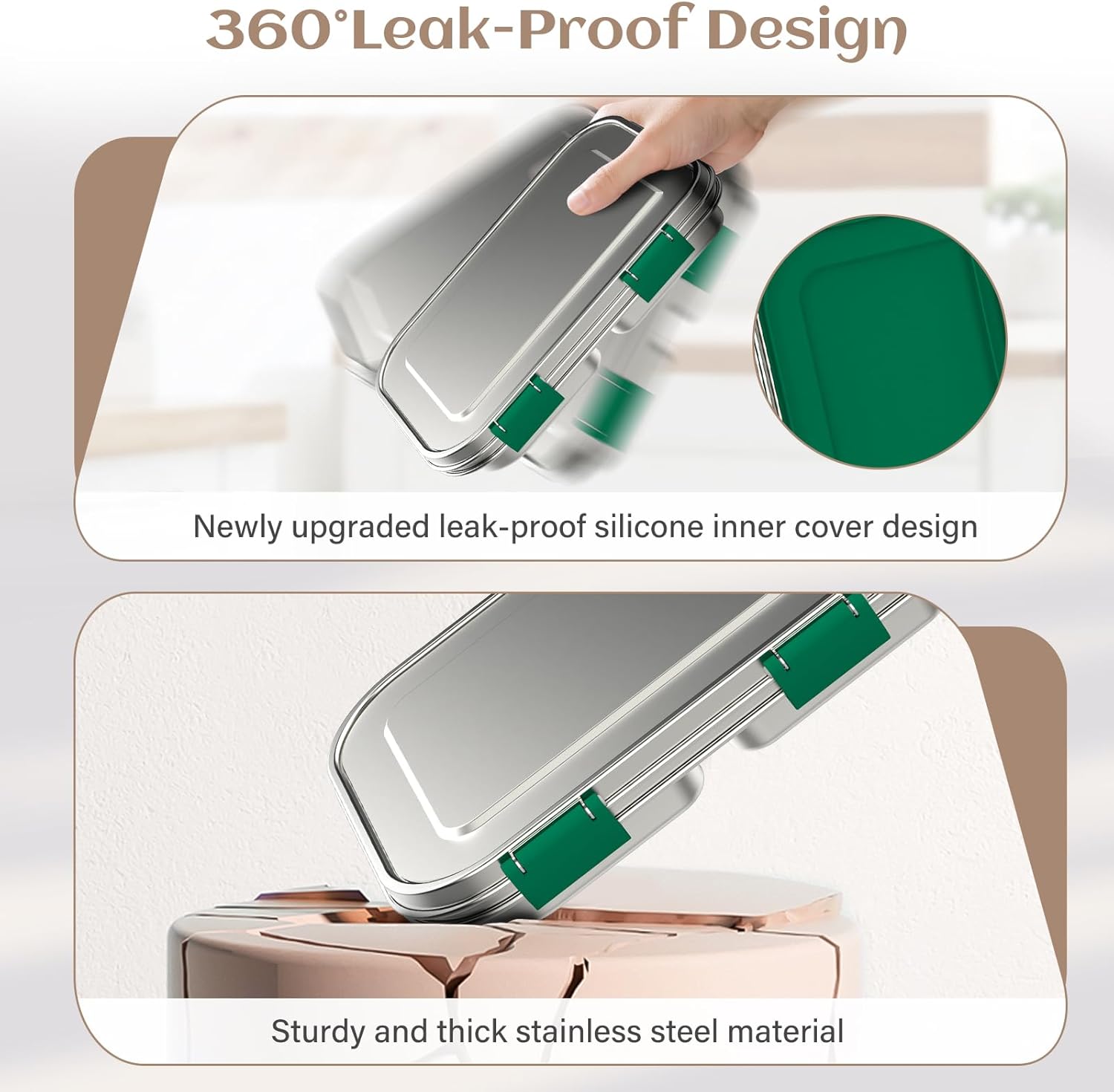 - Leak-Proof Guarantee: This upgraded leak-proof stainless steel bento lunch box has been professionally designed to prevent leakage of thick condiments such as ketchup and salad dressing. Our advanced silicone sealing lid ensures food stays fresh and mess-free all day long. Perfect for kids who love to dip their veggies!