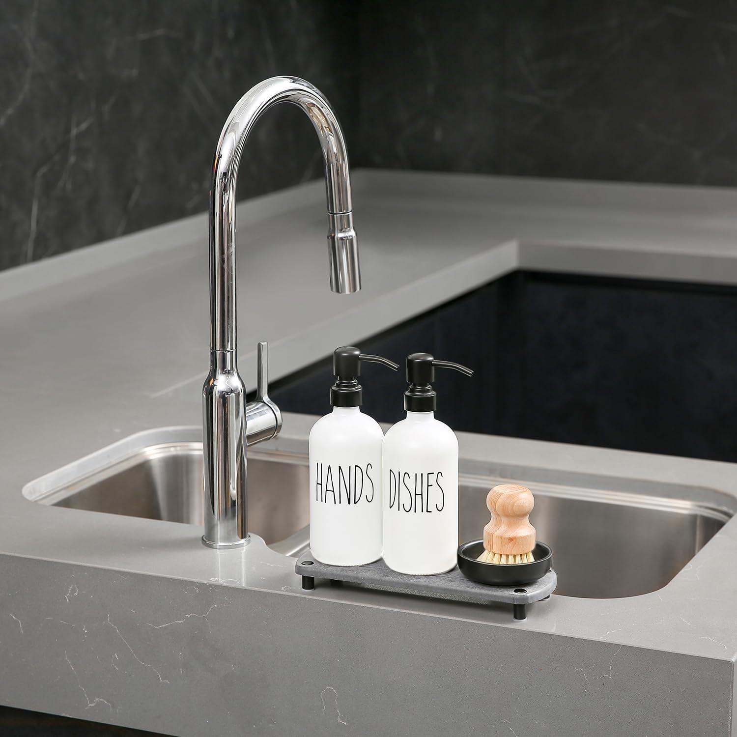 - [Aesthetic Appeal] Elevate the aesthetic of your kitchen with the kitchen hand soap dispenser set. The minimalist design of the soap pump dispenser adds a stylish flair to any countertop and is also very suitable as kitchen sink accessories.