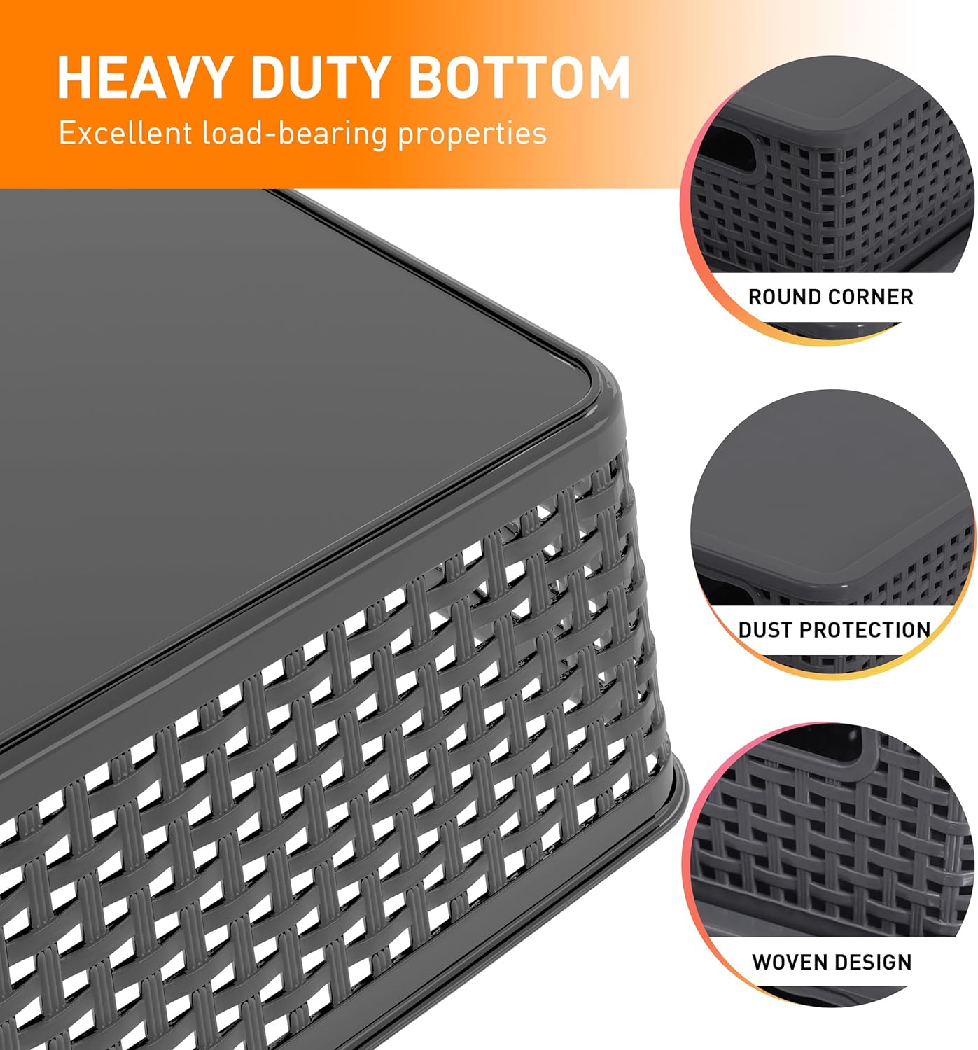 - Easily Accessible:Each plastic woven storage basket features a snug-fitting lid to protect contents from debris, keeping items intact. The lids open smoothly for quick access, ensuring both security and convenience