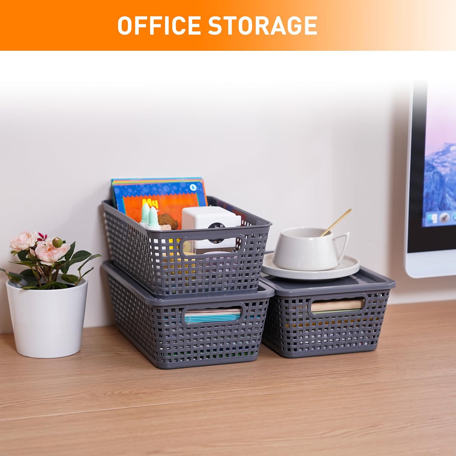 - Easily Accessible:Each plastic woven storage basket features a snug-fitting lid to protect contents from debris, keeping items intact. The lids open smoothly for quick access, ensuring both security and convenience
