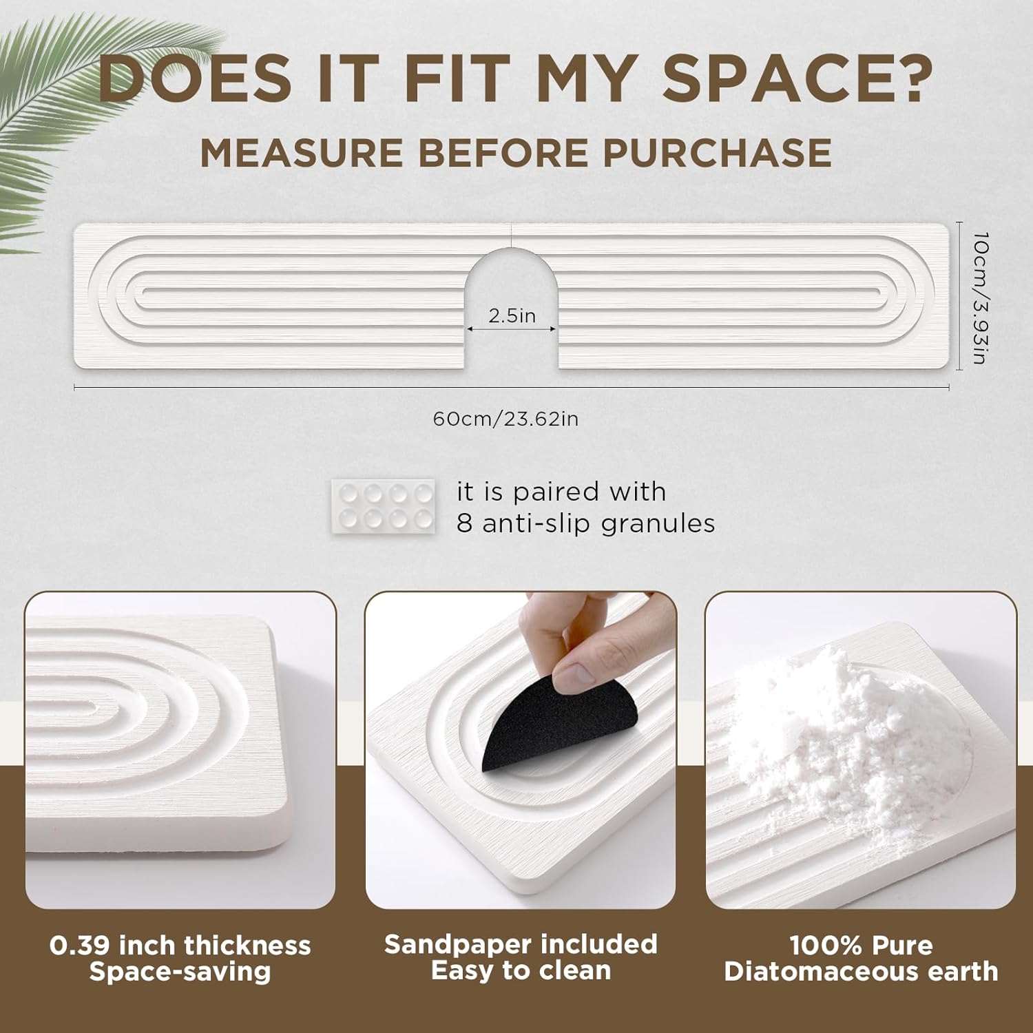 - 𝐒𝐚𝐟𝐞 & 𝐏𝐫𝐞𝐦𝐢𝐮𝐦 𝐖𝐚𝐭𝐞𝐫 𝐀𝐛𝐬𝐨𝐫𝐩𝐭𝐢𝐨𝐧: Crafted from 100% natural, odorless, and non-toxic diatomaceous earth, this mat features millions of micropores that rapidly absorb and evaporate moisture. Safe for all ages and free from harmful chemicals, it keeps your sink area clean, dry, and protected from water stains or damage.