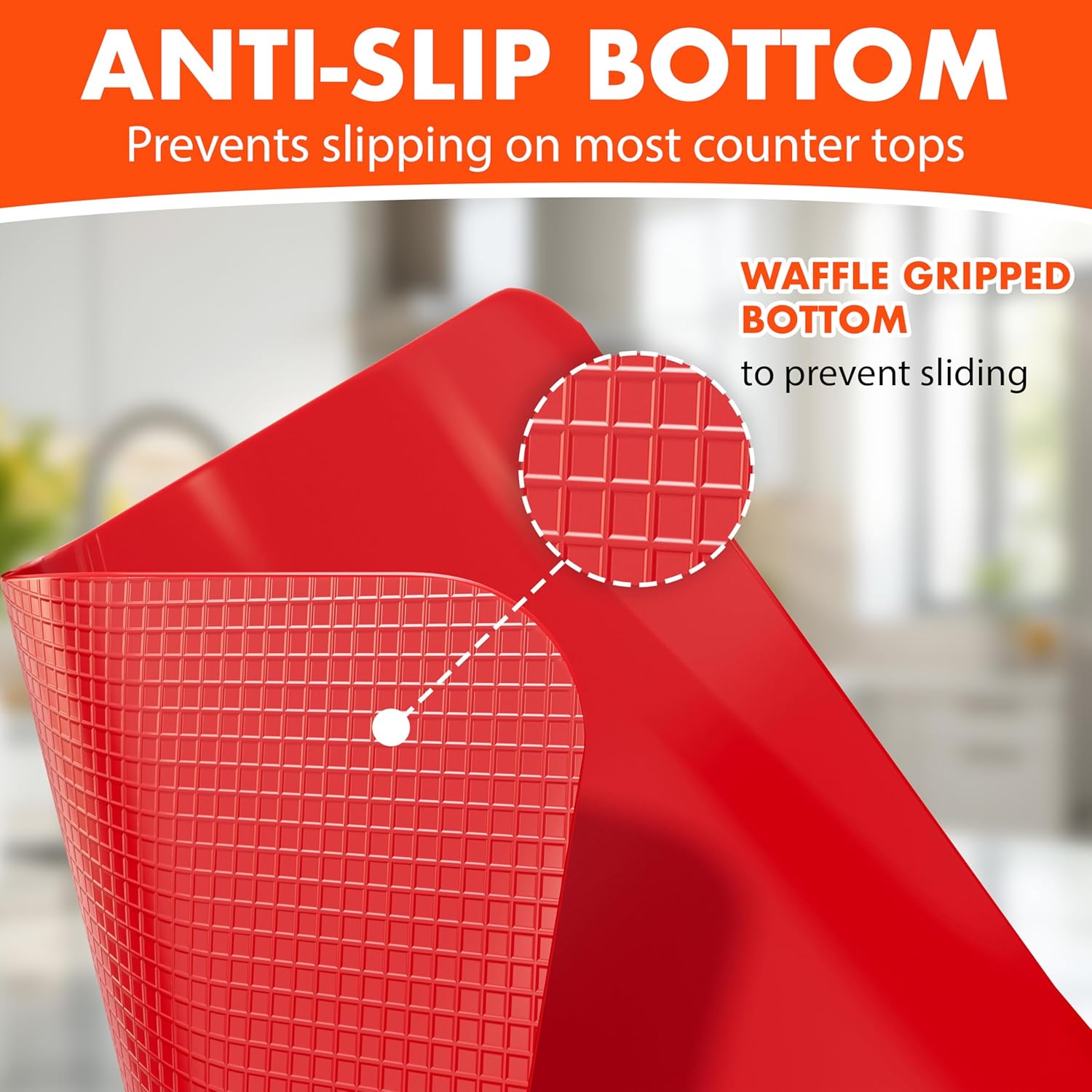 - [𝗡𝗢𝗡-𝗦𝗟𝗜𝗣 𝗚𝗥𝗜𝗣 𝗧𝗛𝗔𝗧 𝗦𝗧𝗔𝗬𝗦 𝗣𝗨𝗧] – Waffle-textured backing prevents slipping on most countertops. No more dangerous sliding boards while chopping, just stable, confident cuts every time.