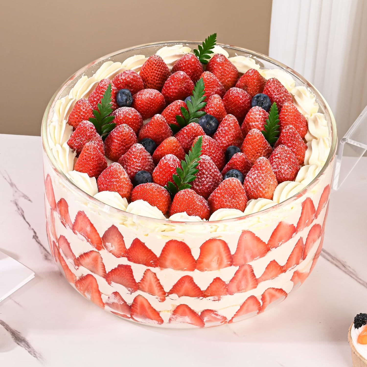 - Upgraded Size: Upgraded this 10*5.1 inch Large-sized glass trifle bowl, with a capacity of up to 197 oz, easily meeting the needs of large family gatherings or personal daily use. It is suitable for mixing and serving salads, layered cakes, desserts, fruits, pasta, dough, trifles, and more.