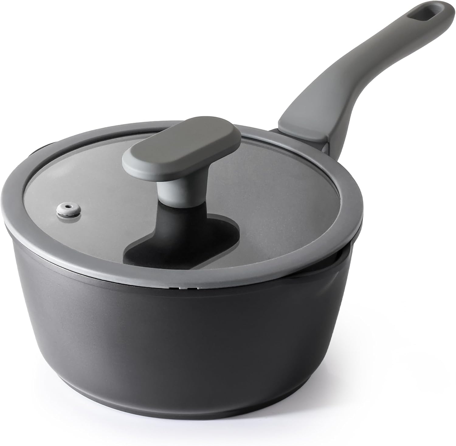 PRICUSIS Nonstick Saucepan with Lid, 2 Quart Non Toxic Pot with Pour Spouts, Full Coated, 100% Dishwasher Safe, Induction Compatible & Oven Safe, PTFE & PFOA Free, Black Sesame