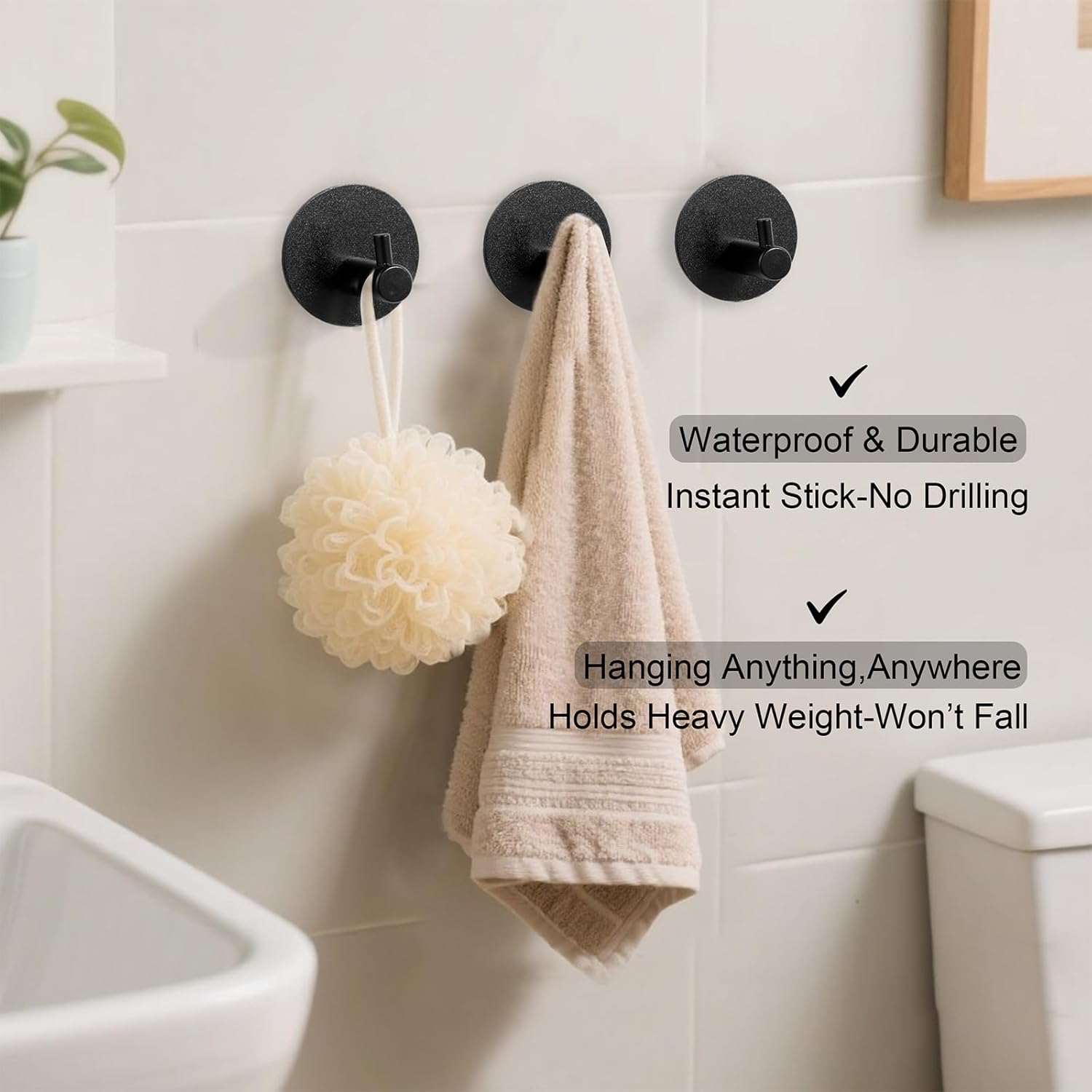 Aluminum Wall Hooks, No Drill Damage-Free Adhesive Hook, Product for Hanging Heavy Duty for Bathroom Kitchen Home (Single Round Black Hook, 4)