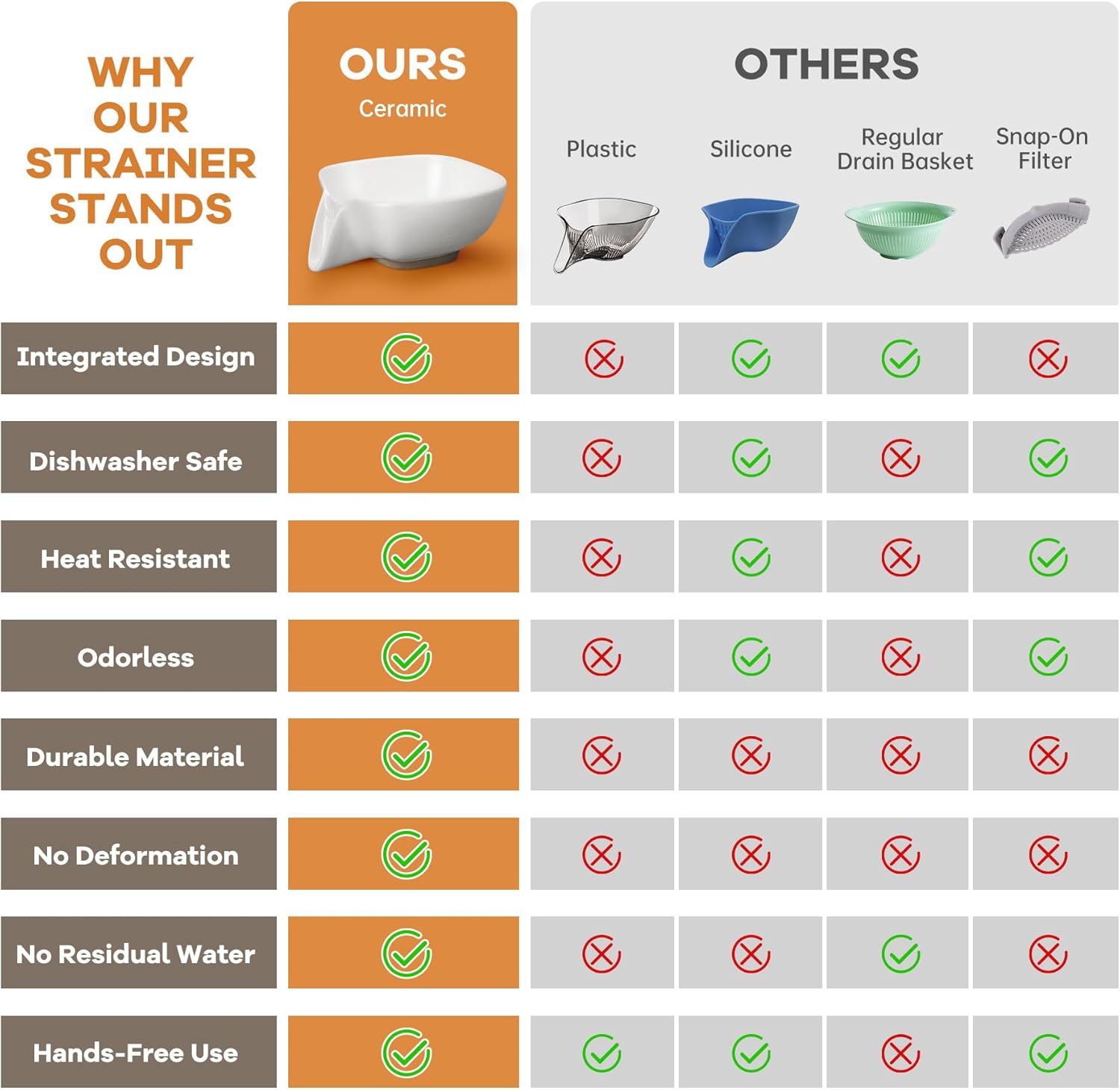 - Premium Ceramic Material: Made from high-quality ceramic, this product offers exceptional stability and slow heat transfer properties. It won’t crack under sudden temperature changes and remains safe to touch when draining hot food, ensuring safer use.