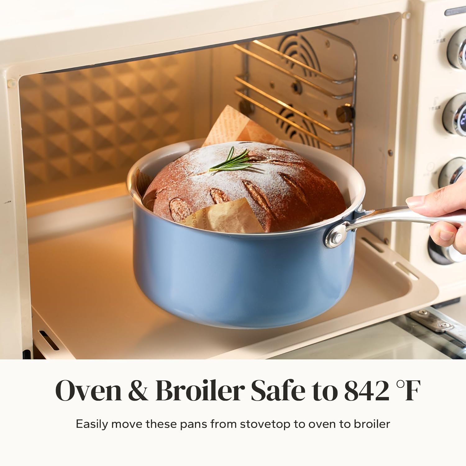 Redchef Nonstick Ceramic Sauce Pan with Lid, 2.5QT Small Cooking Pot with Stay-Cool Handle, Kitchen Non Toxic Soup Pot, PTFE & PFOA Free, Oven & Dishwasher Safe, Compatible with All Stovetops-Blue
