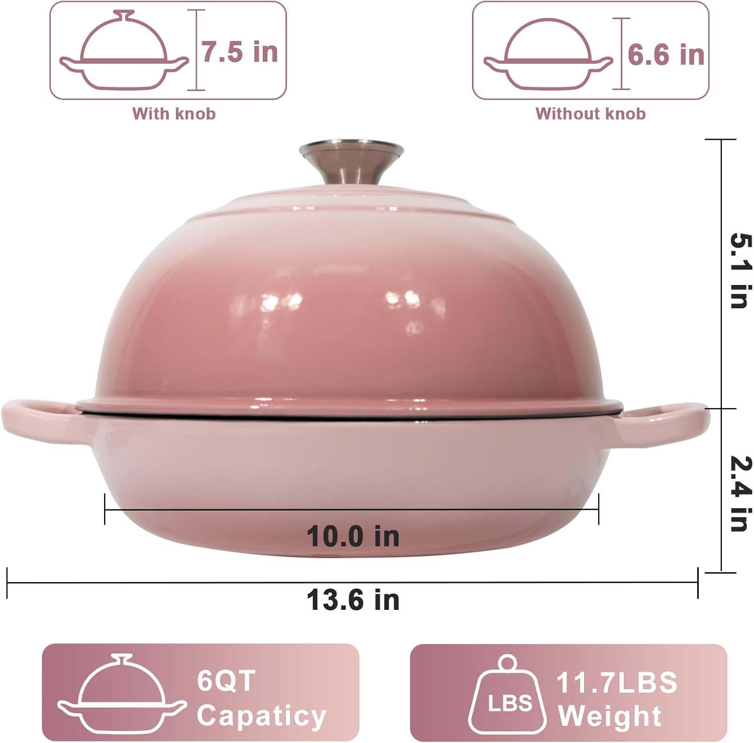 - GET A CRISPY BREAD CRUST EVERY TIME: Engineered for even heat distribution, our triple-layer enamel coating ensures a crispy golden crust and tender crumb. The dome lid locks in steam circulation—ideal for sourdough, whole-grain, and rustic boules.