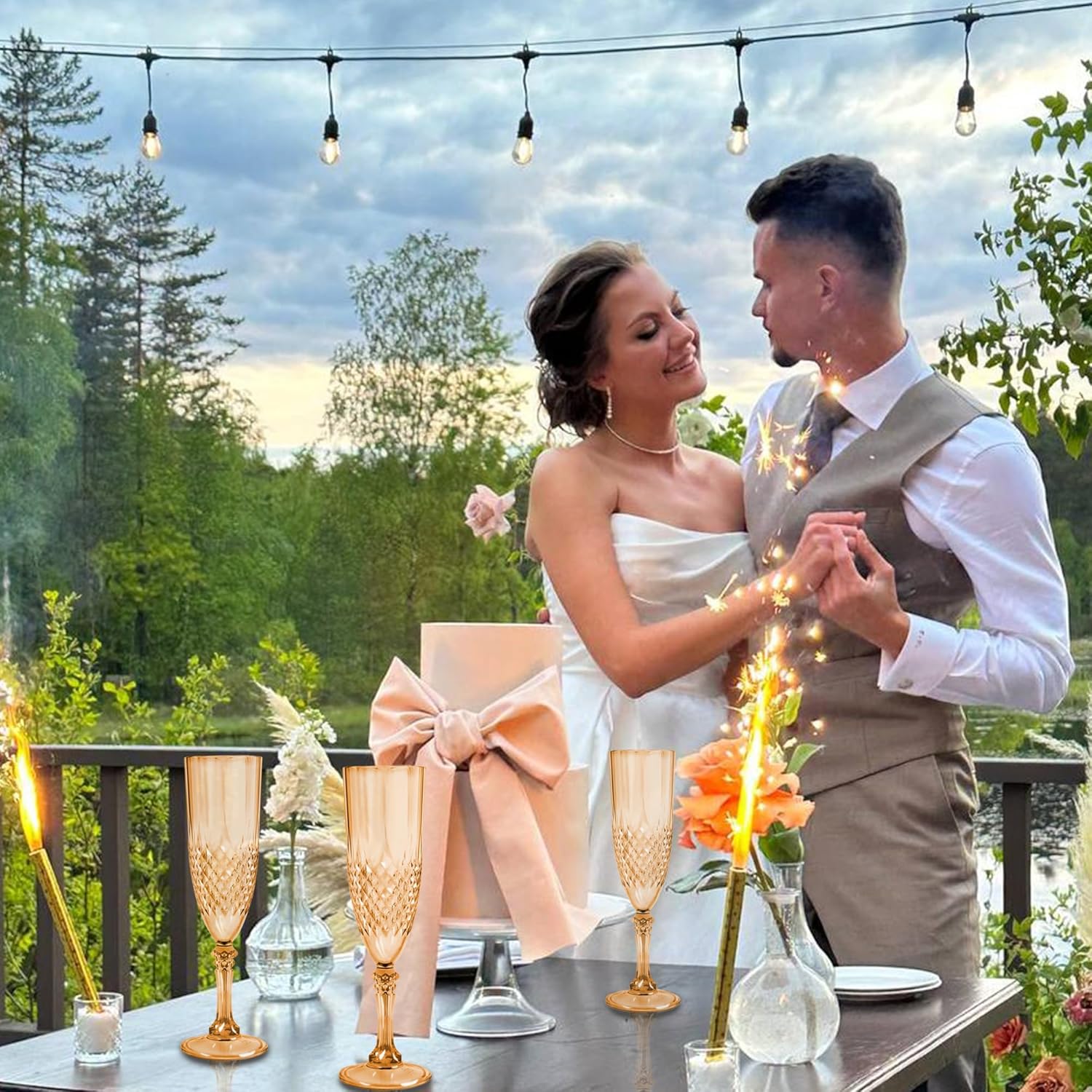 - Charming Set: Champagne flutes set include 12 retro-style gold champagne plastic wine glasses, providing ample quantity to meet your daily use and replacement needs. A suitable champagne cup is the icing on the cake. Plastic wine glasses not only carry the wine, but also carries the laughter and blessings
