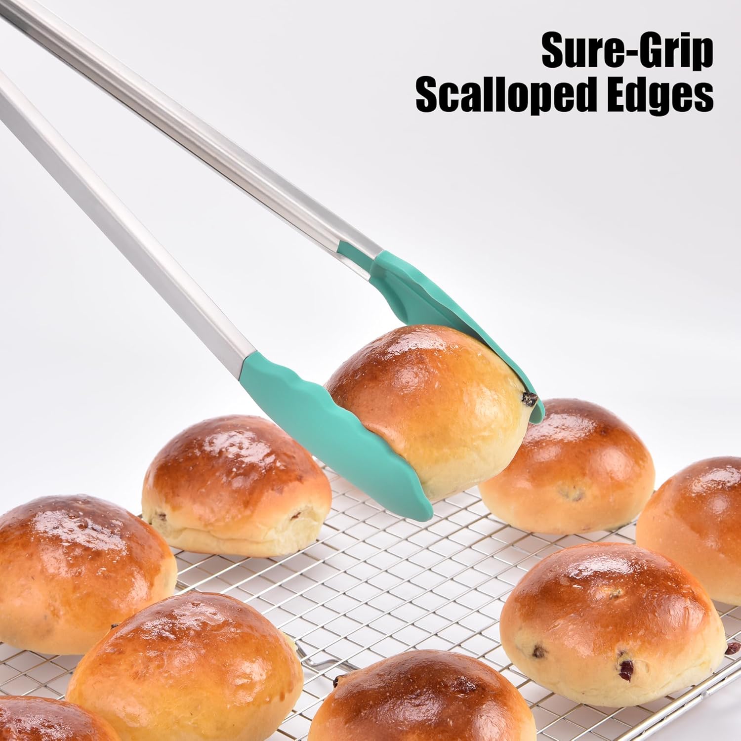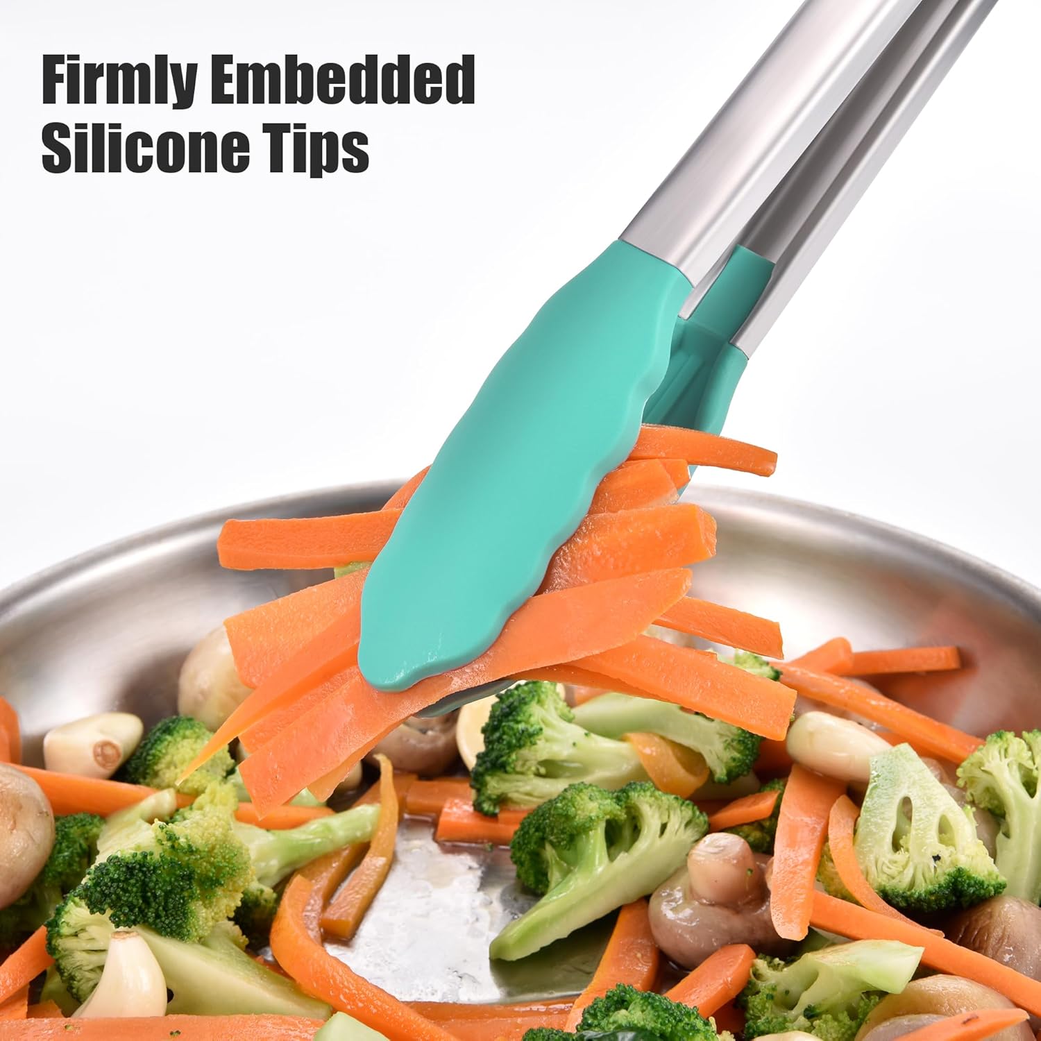 - Are tips heat-resistant and non-scratch? The tips of the tong are coated with high-quality, food grade silicone that is heat-resistant up to 600°F (315°C), making them safe for directly handling hot foods from the oven, stovetop, or grill. Unlike metal-tipped tongs, the soft silicone tip won’t scratch or damage non-stick pans or grill grates. The scalloped edges are specially designed to provide a secure, non-slip grip, easy to grasp delicate vegetables, smooth meat, or small pieces of food.