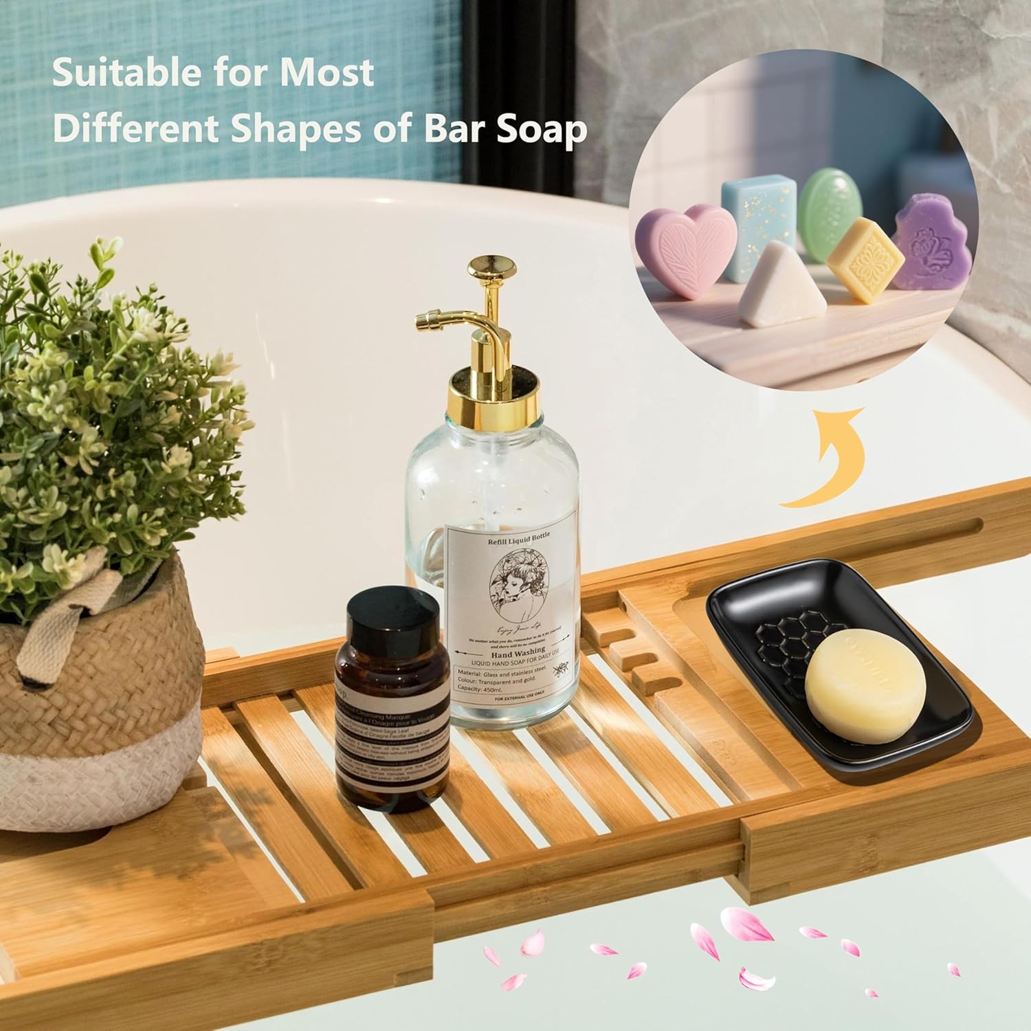 - PREMIUM CERAMIC & EASY TO CLEAN: Compared to plastic, wood and silicone materials, our ceramic materials are more high-quality and long-lasting, waterproof and non-slip, and will not break easily. The bathroom soap dish has a smooth surface and is easy to clean, You can use a soft brush to gently scrub it with water, or directly put it in the dishwasher. (Tips: Wash once a week is recommended.)