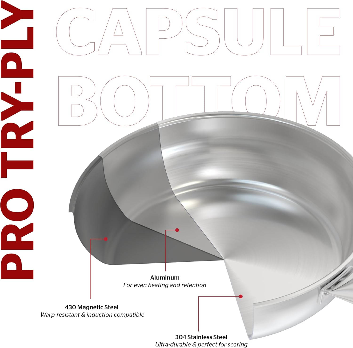 Sunhouse 9.5 Inch 18/10 Chef Series Stainless Steel Frying Pan, Tri-Ply Stainless Steel Construction, PFOA-FREE, Stay-Cool Handle, Induction Compatible