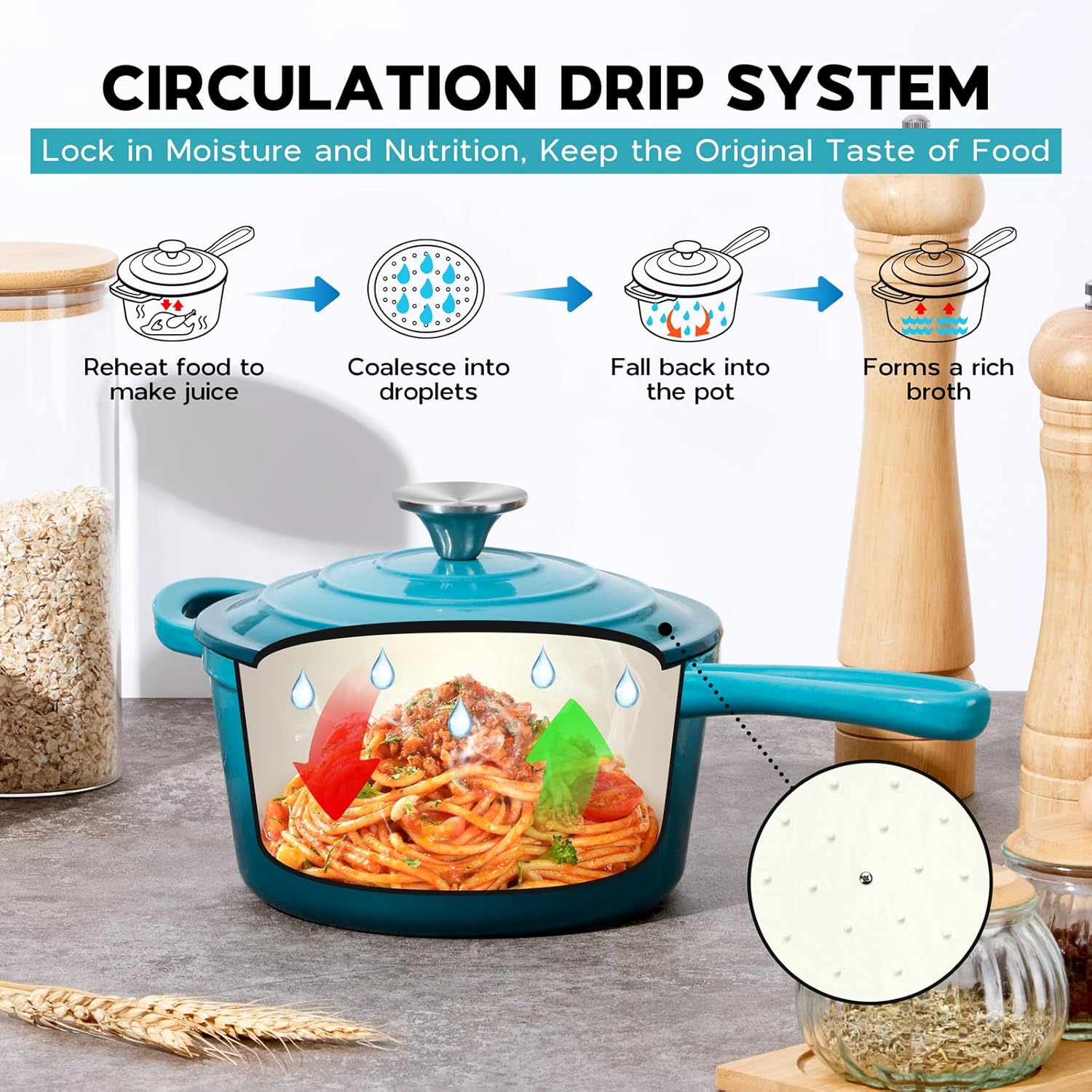 1QT Saucepan with Lid, Onader Enameled Cast Iron Sauce Pan, Small Cast Iron Pot for Cooking, Enameled Dutch Oven Nonstick & Heavy Duty – Dark Cyan