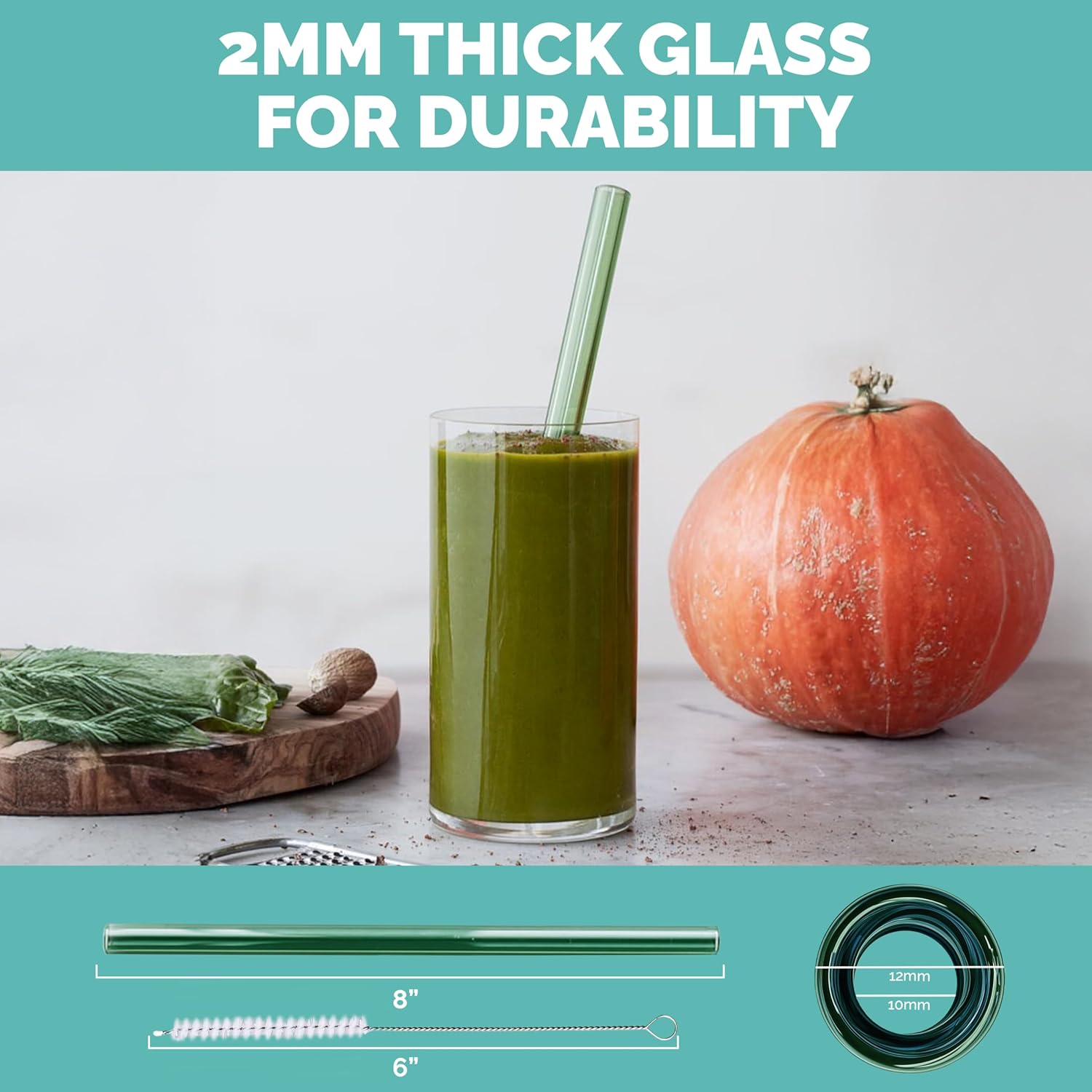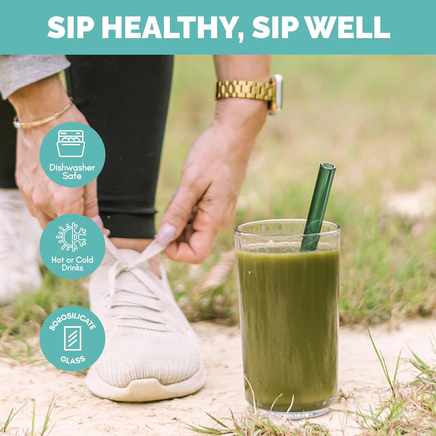 - Sized for Medium Glasses: Each 8 inch glass smoothie straw fits pint glasses, juice tumblers, and everyday drinkware—ideal for bubble tea, protein shakes, and frozen blends.