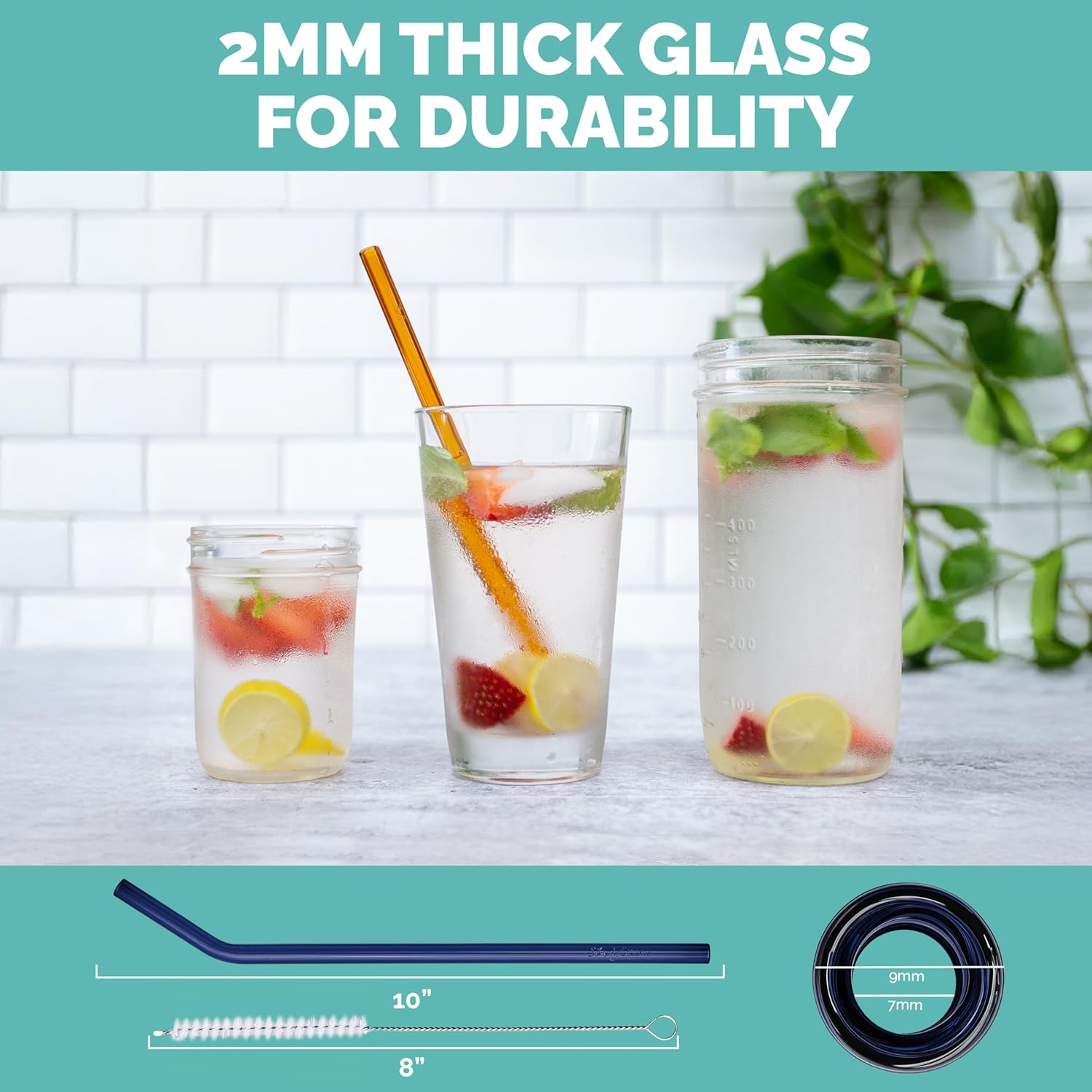- Sized for 24 Oz Jars & More: These 10 inch glass straws are ideal for 8" tall glasses, 24 oz mason jars, and small tumblers. 9mm outside diameter for smooth sipping.