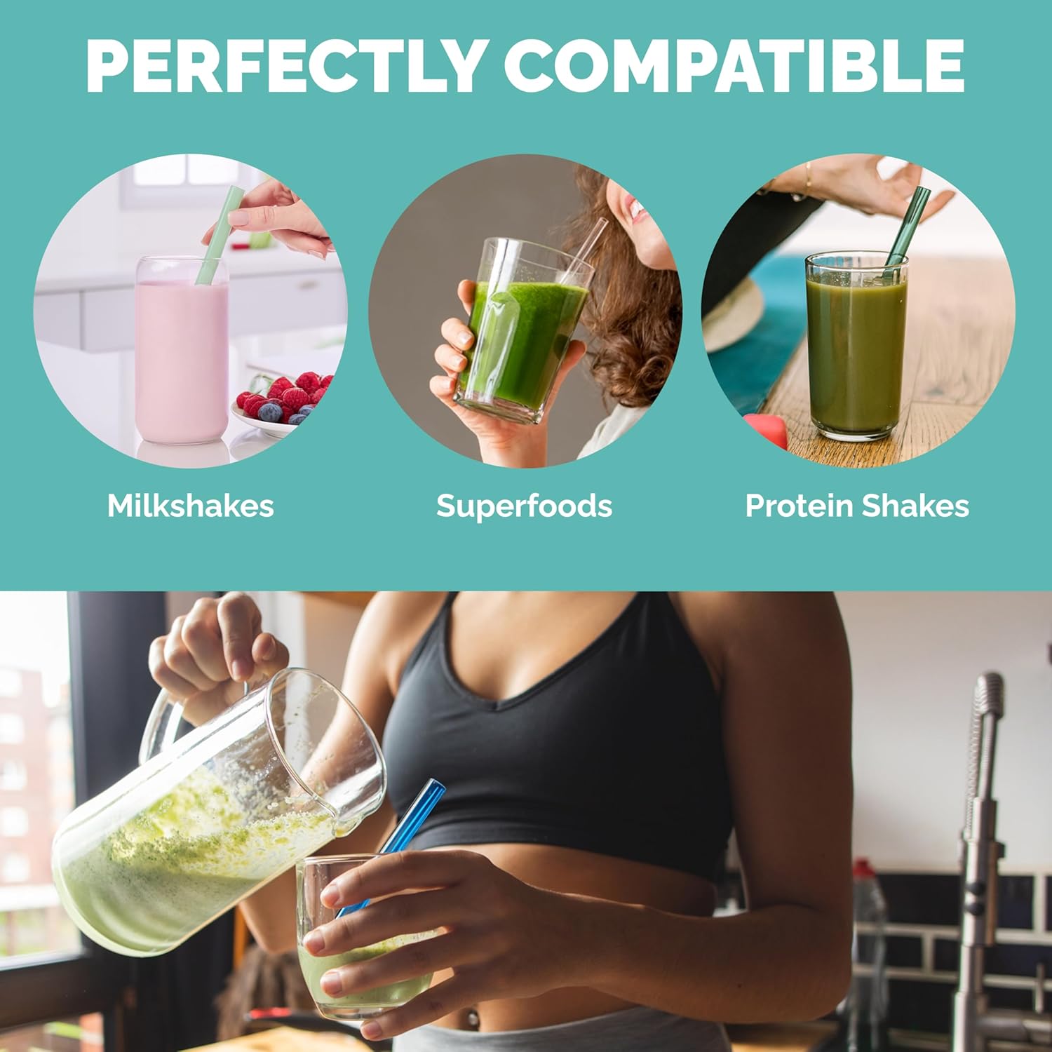 - Sized for Big Drinks: Each 10 inch glass smoothie straw is designed for tall cups, tumblers, and jars—perfect for bubble tea, protein shakes, and frozen blends.