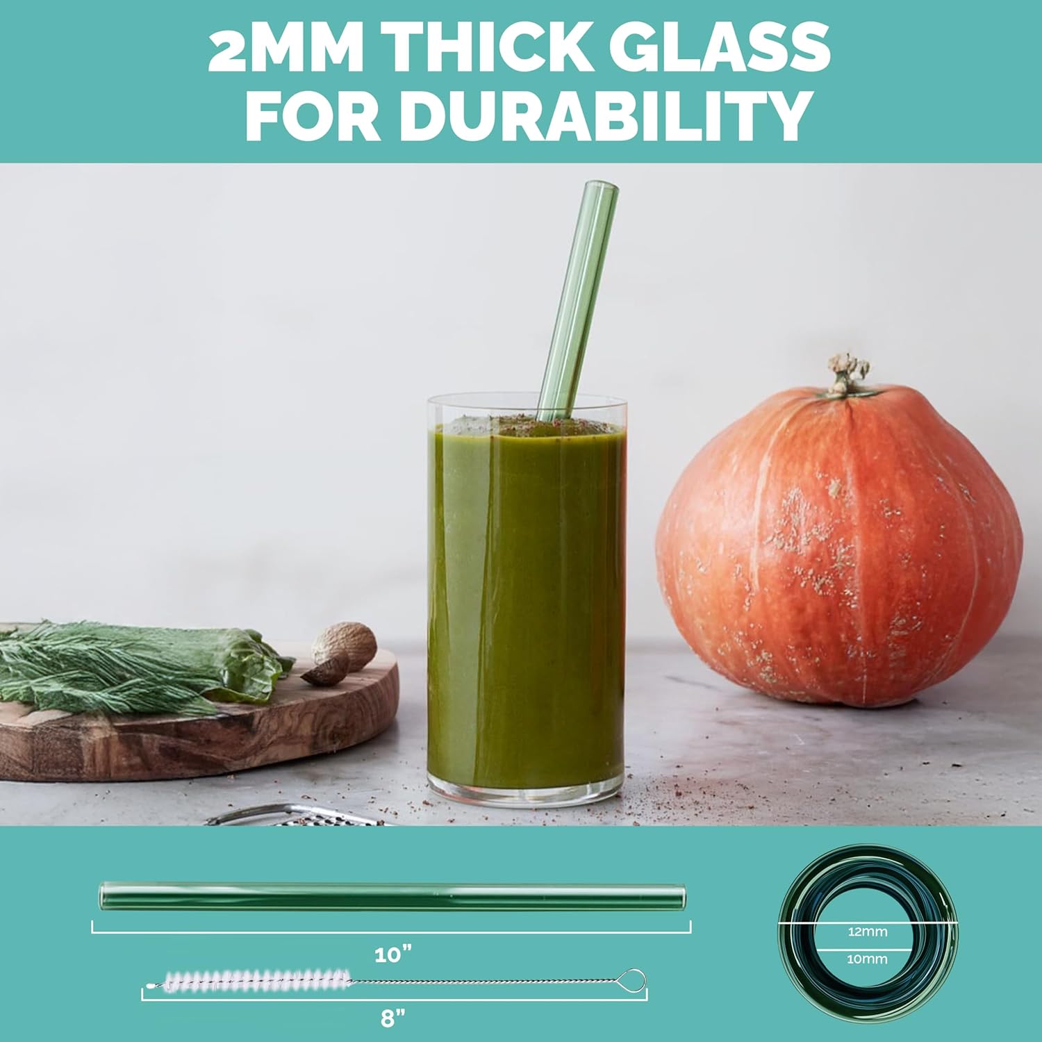 - Sized for Big Drinks: Each 10 inch glass smoothie straw is designed for tall cups, tumblers, and jars—perfect for bubble tea, protein shakes, and frozen blends.
