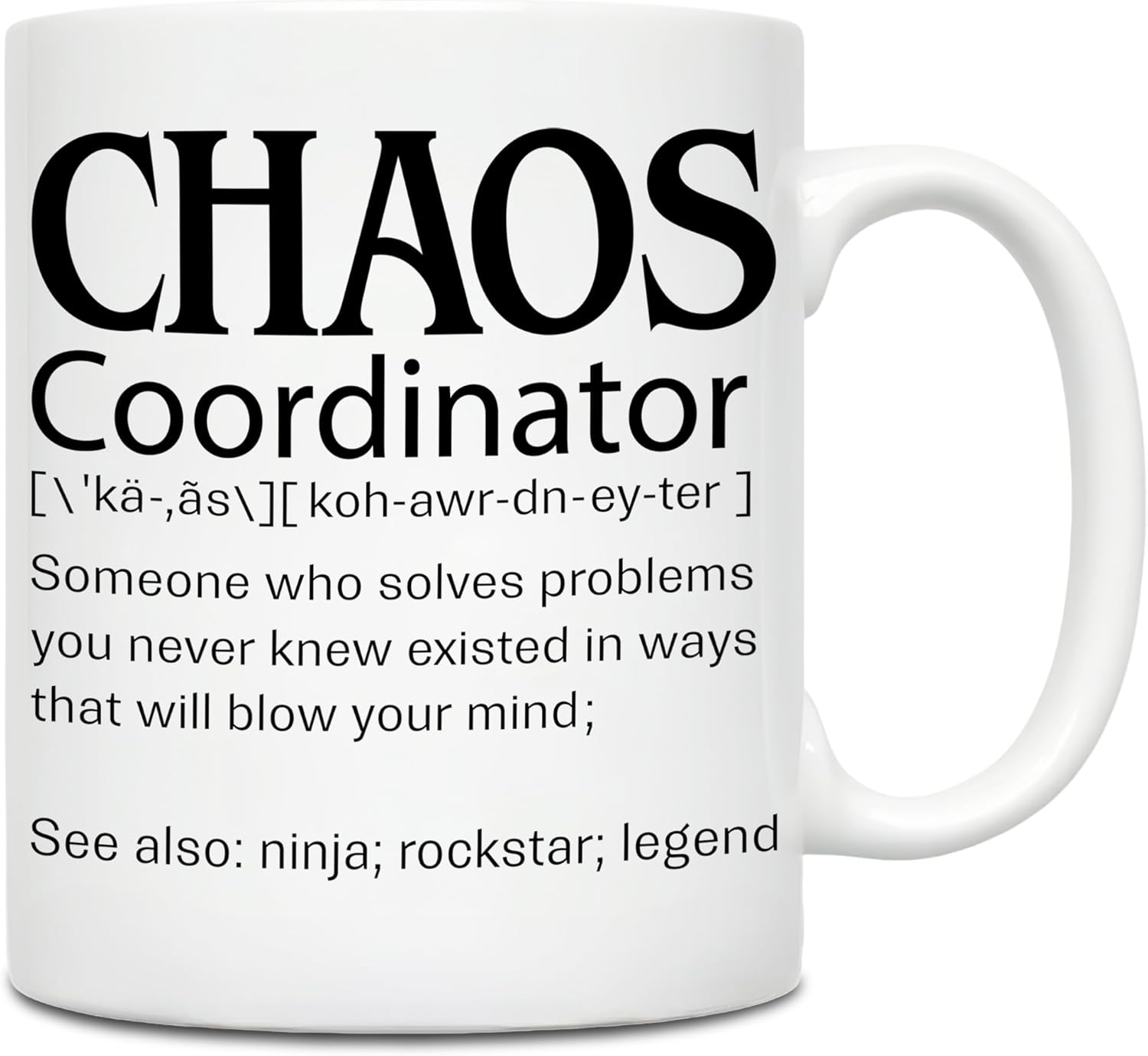 - Bold & Relatable Design: Features a playful definition of “Chaos Coordinator” that’s guaranteed to spark laughter. Stylish black text with clean typography that stands out at home or the office.
