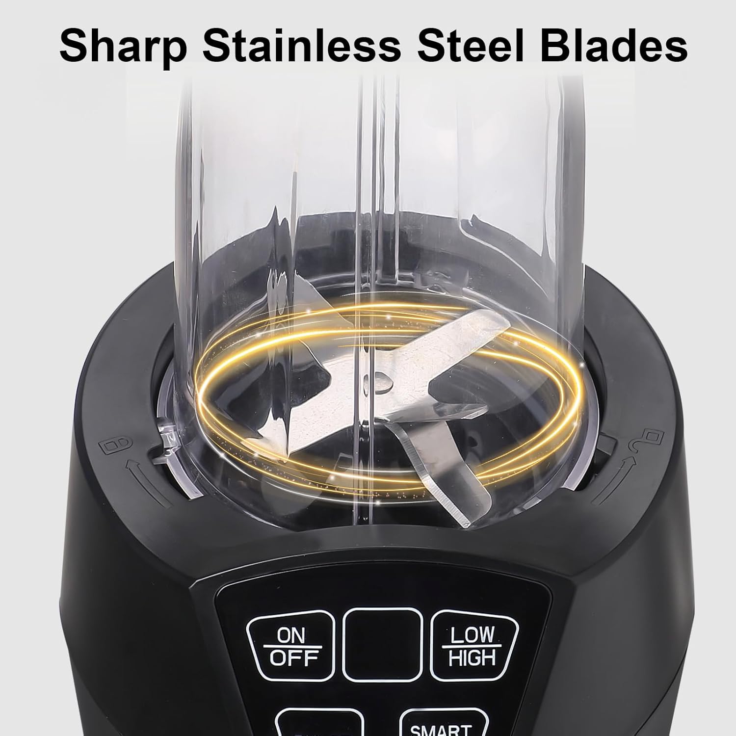 - Powerful Motor:Rated 1000 Watts smoothie machine has 1200-Peak-Watts power, crushes the hardest ingredients and frozen fruit for smoothies in seconds