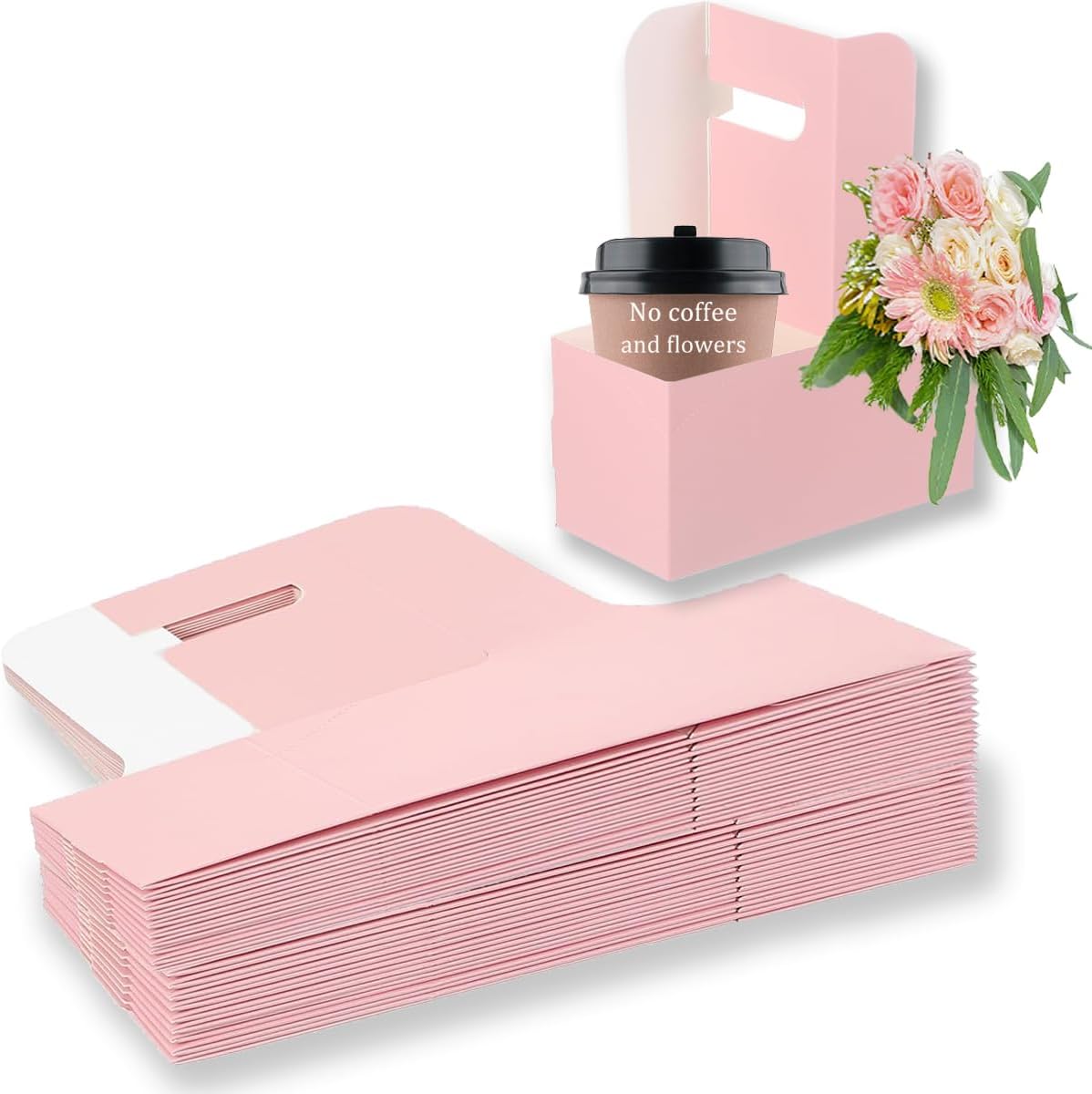 - 【Package Content】20 count pink cup drink carrier with handle kraft paperboard cup holder great for small, medium, and drinks cold or hot,flower,candle...