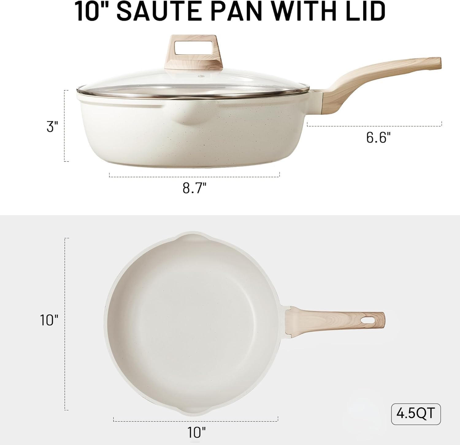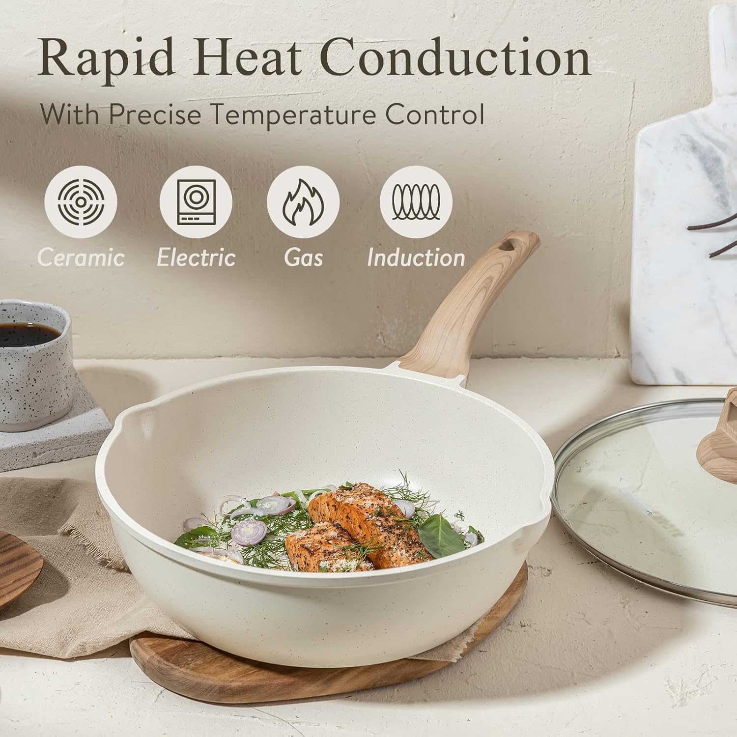 - 【Superior Nonstick Performance】 - Our saute pan, made with natural granite materials, provides superior nonstick performance with 100% PFOA Free and non-toxic properties. Enjoy healthier cooking with less oil intake. Advanced technology ensures a long-lasting and naturally nonstick surface that effortlessly releases food.