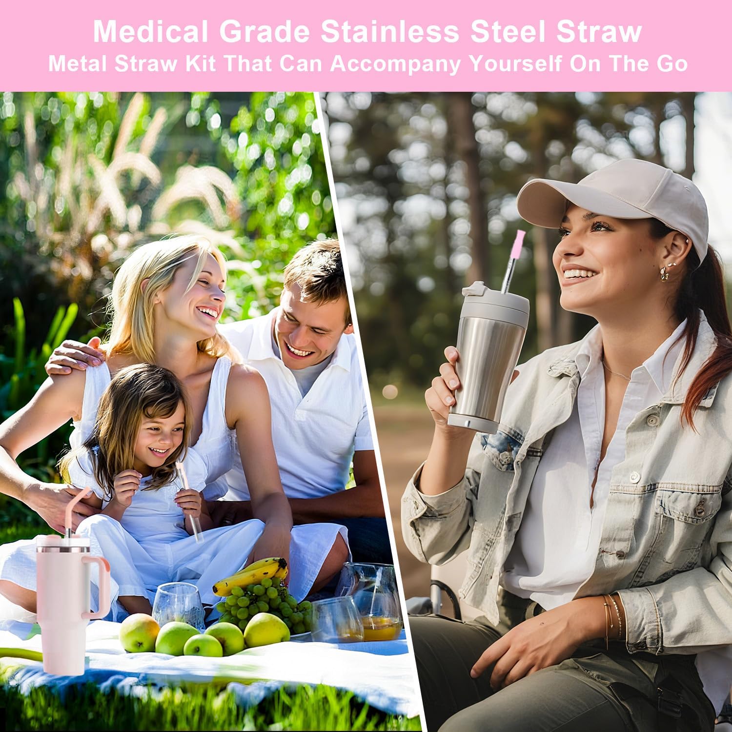 - SAFETY & ENVIRONMENTAL FRIENDLY : Removable food-grade silicone spout , dust and splash proof,friendly to people with sensitive teeth, comfortable and soft, prevents our mouths from touching the stainless steel straw directly to keep away from the metallic taste and protects your lips from overheating or over cooling. Dishwasher safe, enjoy smoothies, milk tea, juice anytime, anywhere. Spare Silicone nozzle, easy to change the use of different sizes of cups