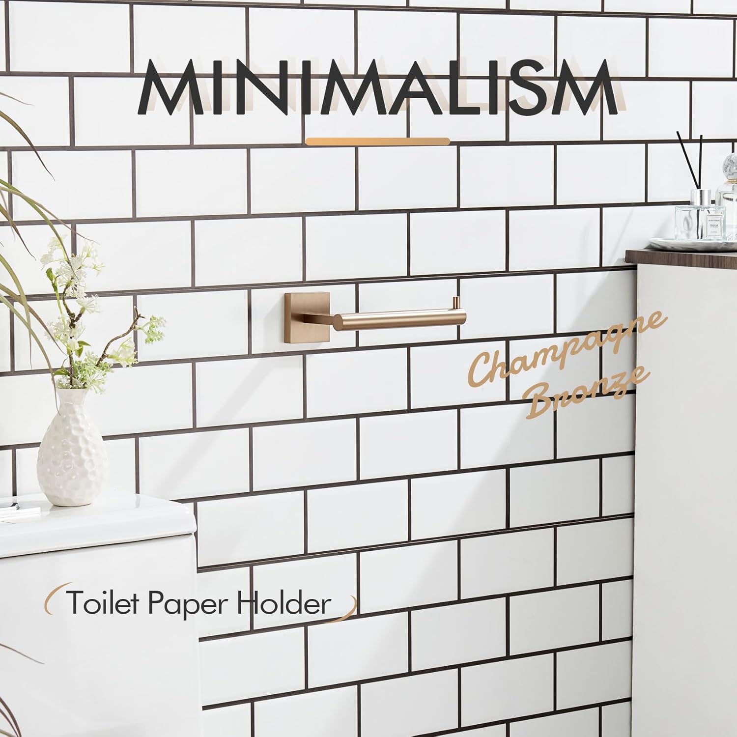 - ◄ CHAMPAGNE BRONZE ► The toilet roll holder is Champagne Bronze finish which is fingerprint-proof and water-proof. The surface covering of toilet roll holder is resisting daily scratches, corrosion, and tarnishing