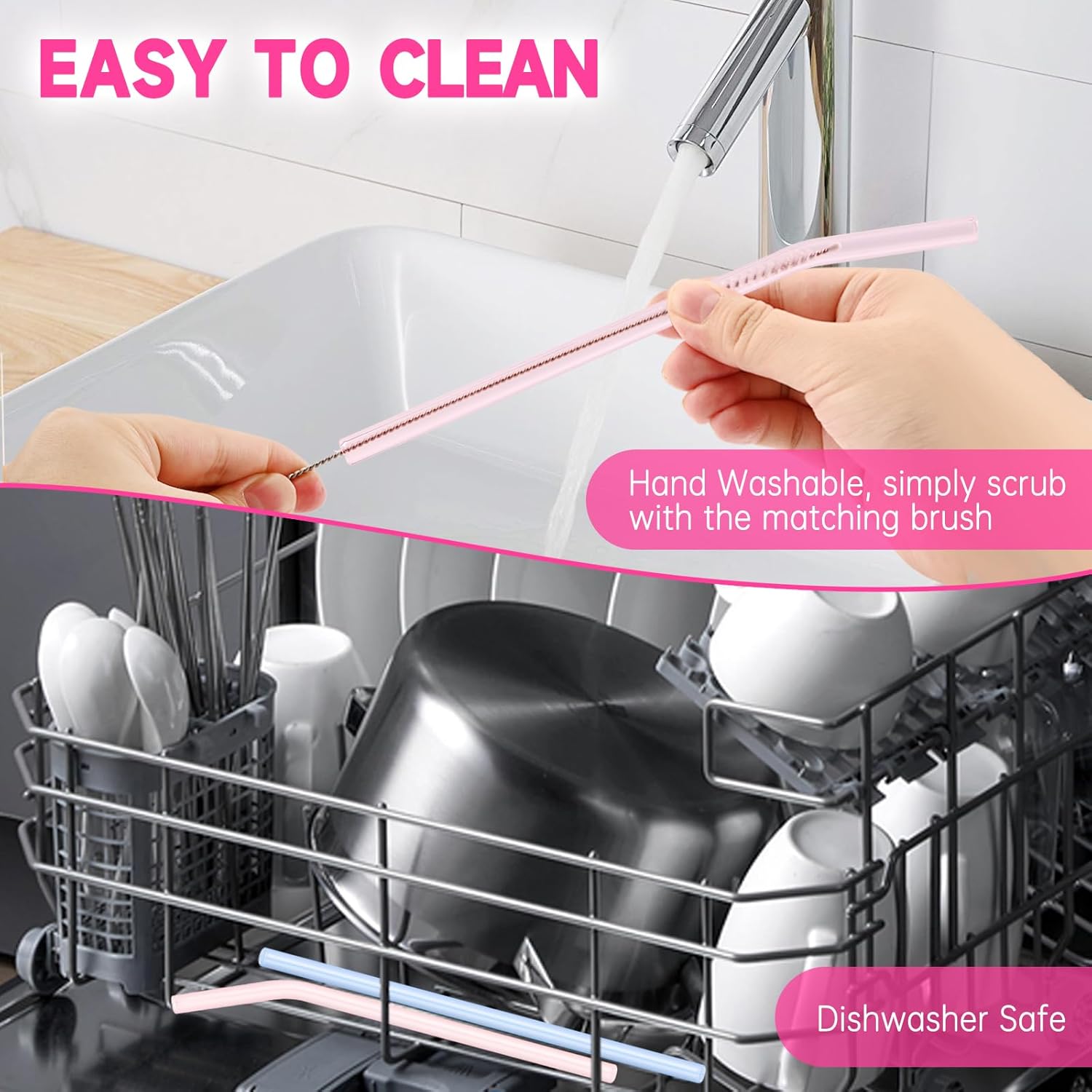 - Easy To Clean—The glass straws are dishwasher safe. You can also easily clean these straws with the included straw cleaning brush, the brush is 8” in length, long enough to clean the entire straw. The color of the straws will remain vibrant after each cleaning