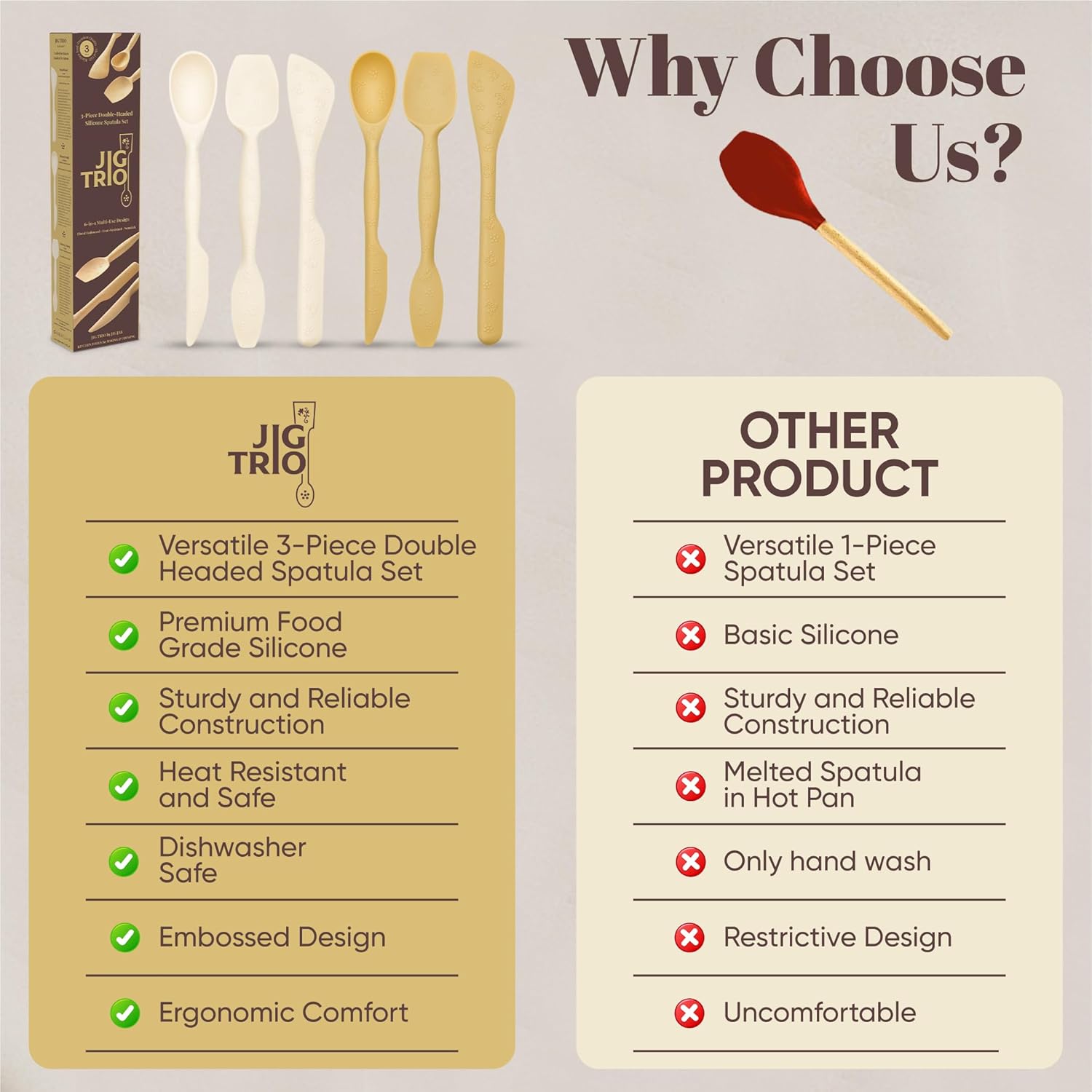 JIG TRIO 3 Piece Double Headed Silicone Spatula Set – Yellow – Heat Resistant Kitchen Tools for Baking, Mixing & Cooking – BPA Free, Dishwasher Safe, Gift Ready