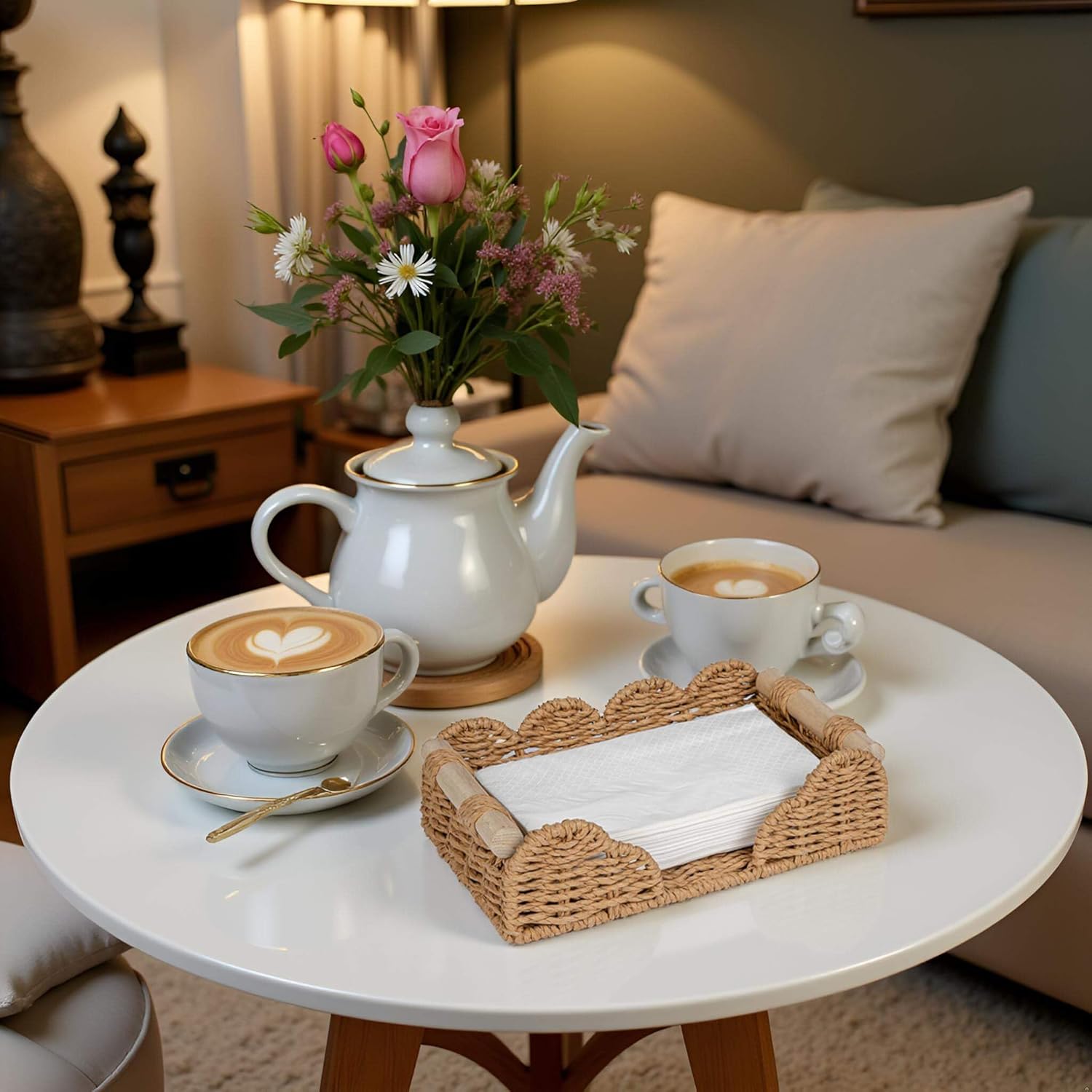 - Handwoven with Premium Paper Rope - Each napkin holder is hand-woven from paper rope and wrapped wooden handles. It is chemical-free. Biodegradable and eco-friendly material, durable. Natural texture add a warmth to kitchen home decor.