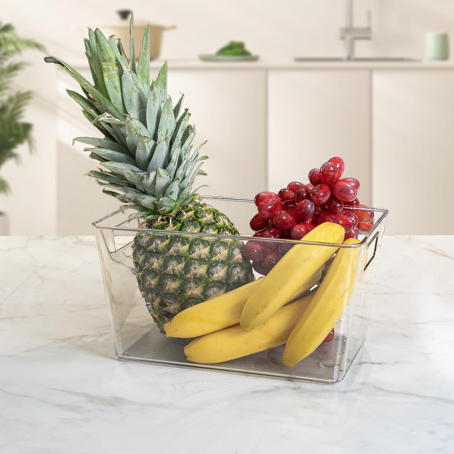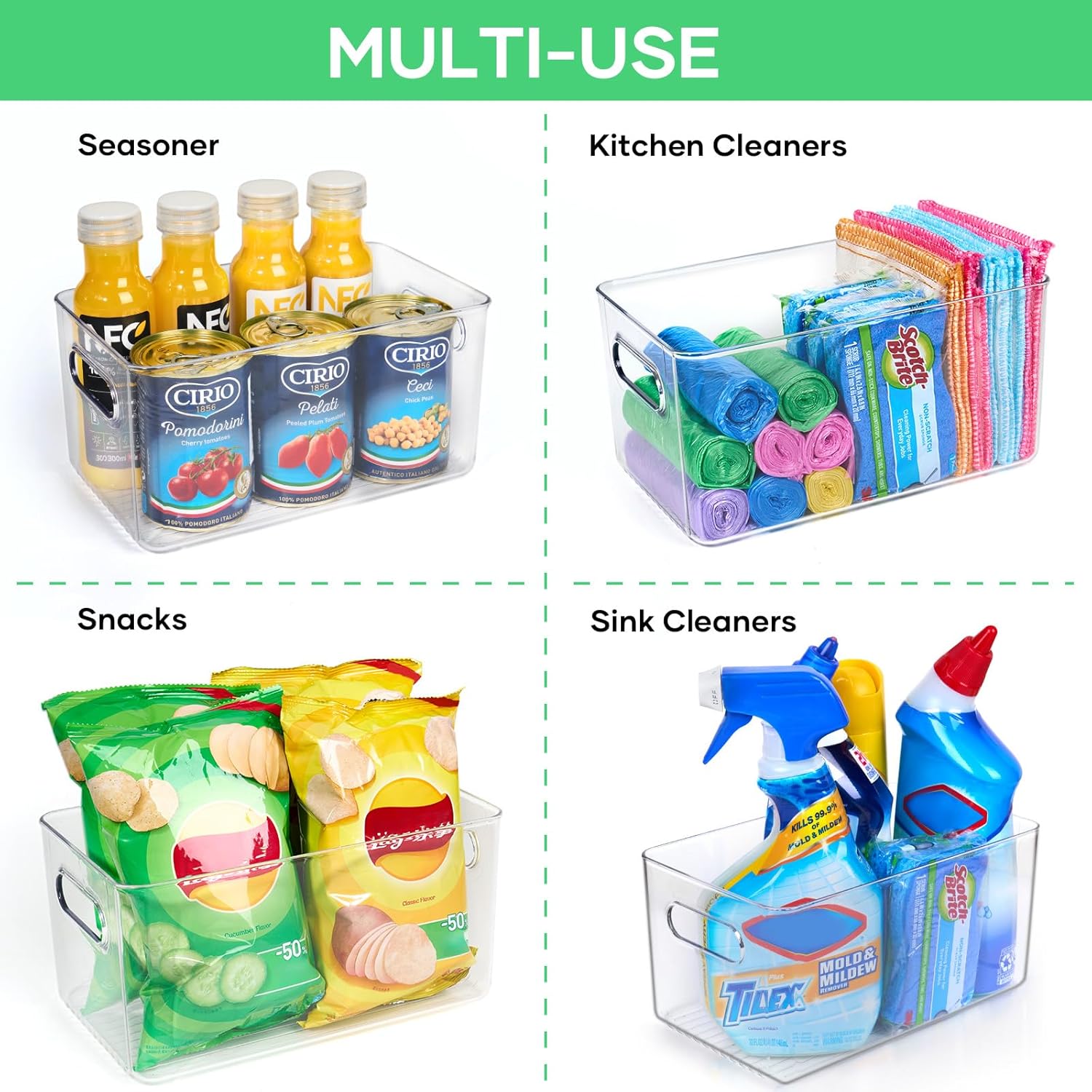 12 Pack Clear Plastic Storage Bins, 11" Large Pantry Organizer Bins with Handles, Plastic Containers for Refrigerator,BPA-Free Perfect for Kitchen,Fridge,Cabinet,Pantry,Bathroom,Closet Organization