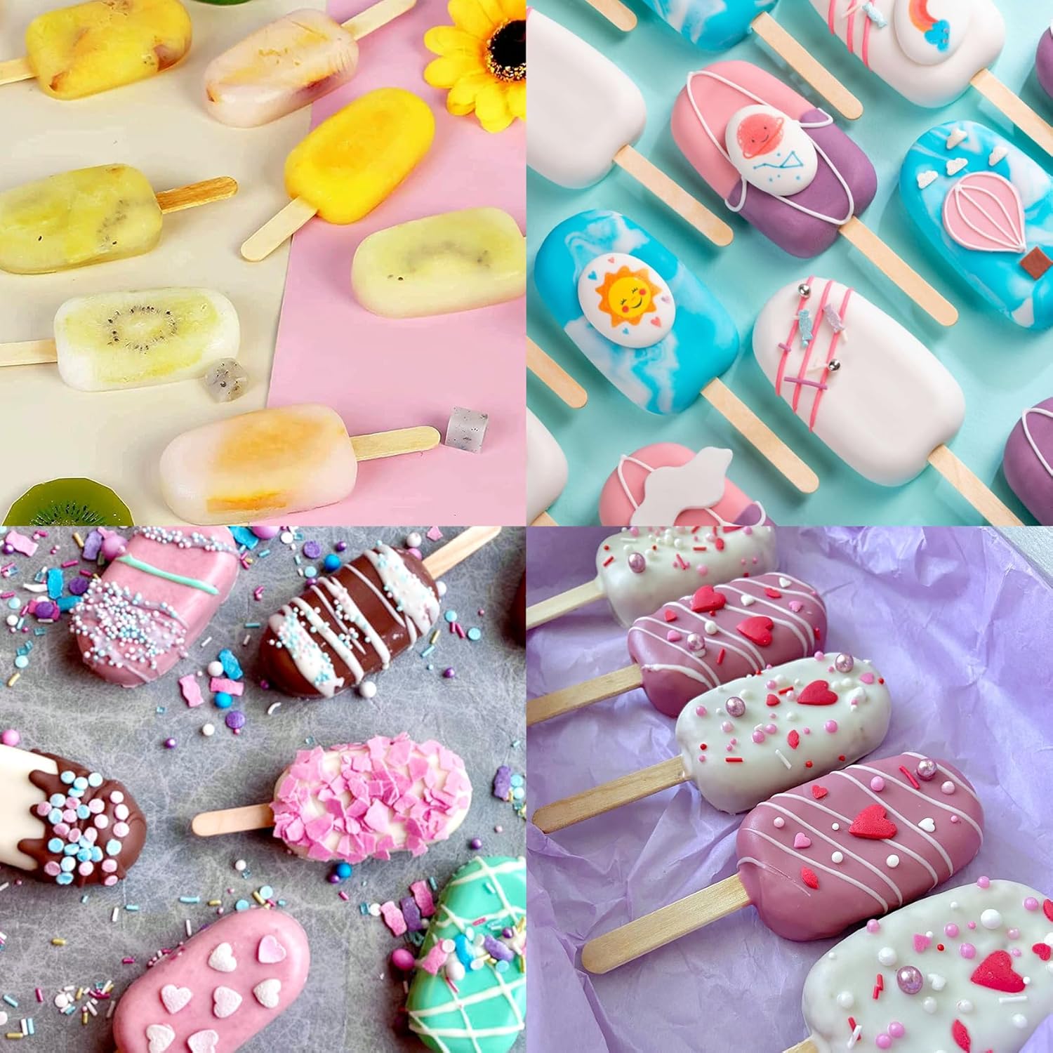 - Let's DIY: No matter Summer or Winter, you can use our molds to make delicious snacks; They can be used as cake pop molds and ice cream bar mold; Add fruit, juice, milk, or yogurt into the molds, you can enjoy different flavours that you like