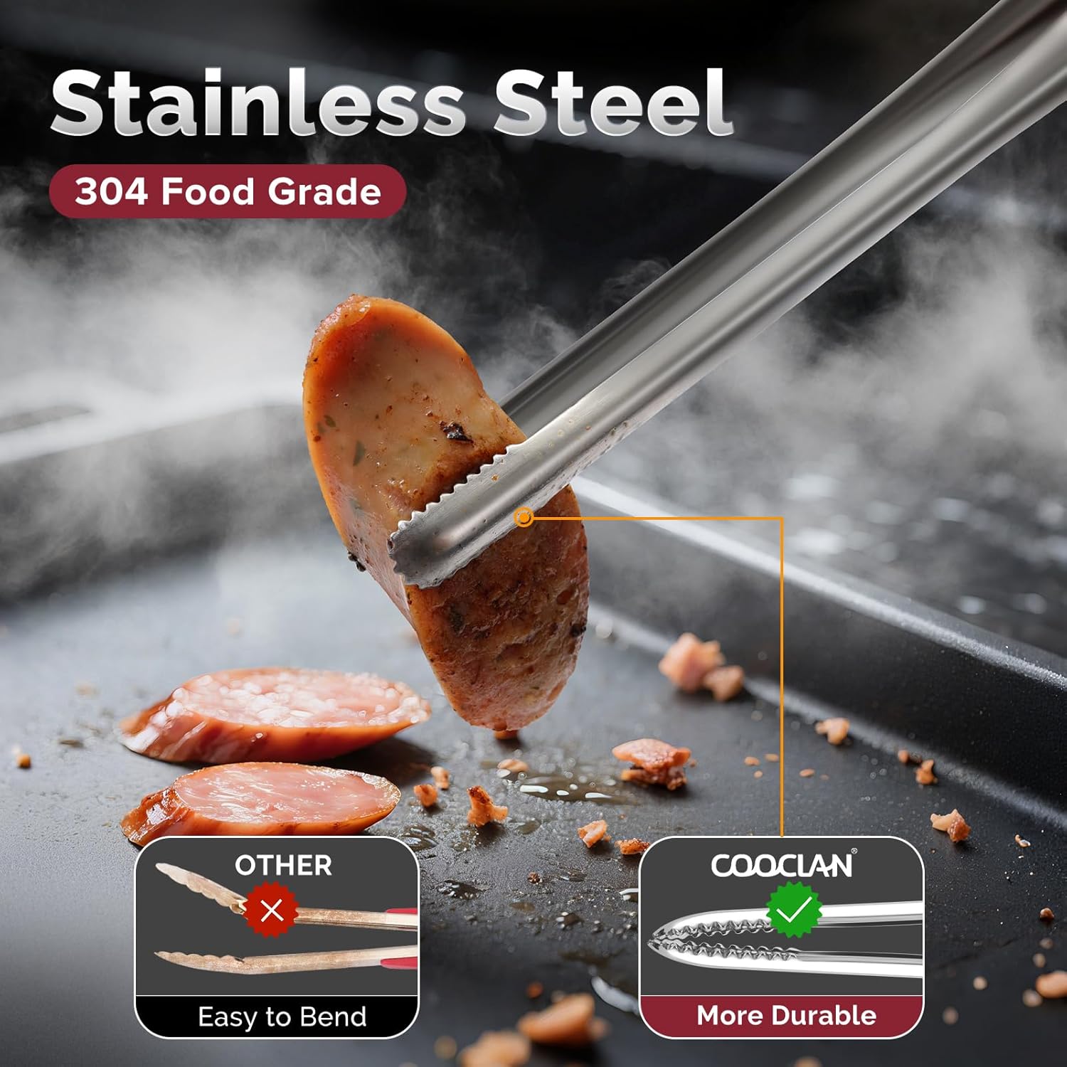 - Light and Durable Stainless Steel Tongs: This cooking tongs has one-piece light simple design, easy to use and care, also premium 304 food-grade stainless steel, 600° F (315° C) high heat resistant, ensure safety and durability for long term use