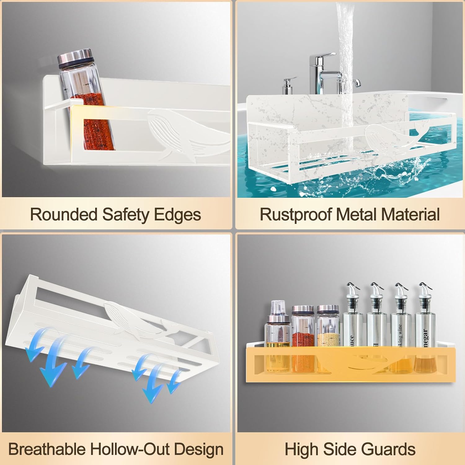 Magnetic Spice Rack for Refrigerator, 4-Pack Metal Seasoning Organizer for Kitchen Storage Organization, Space Saving Magnetic Shelf for Fridge, Pantry, Laundry Room, White