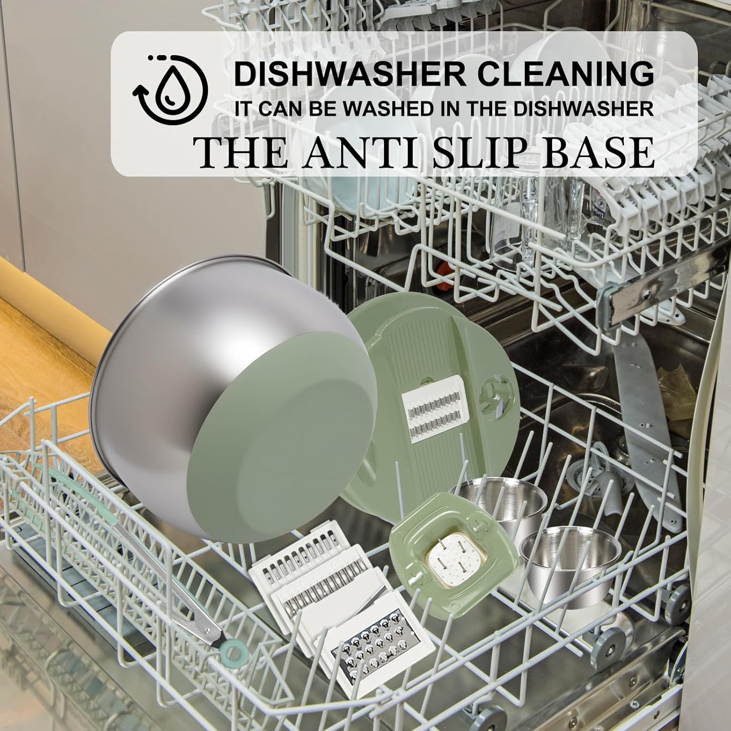 - Enhanced Safety Design: Prioritizing user safety, this salad spinner stainless steel includes a built-in finger guard specifically designed to protect your hands during the slicing and shredding process, preventing accidental contact with the sharp blades.